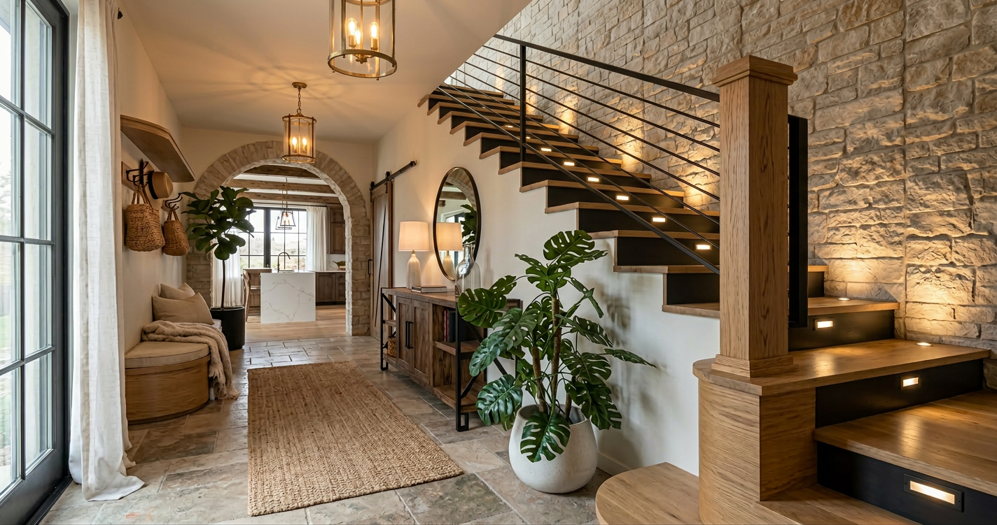 create a photorealistic architectural render from this sketchup model grey wooden panels and crepi black window frames few clouds and soft light coming from the right natural wild grass like a meadow without specific edges house is hanging over a downward sloping meadow on the right that continues to lower fill background on a far distance keep front grass natural