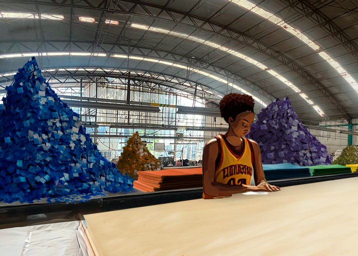put the woman basketball player at the table cutting colorful confetti papers