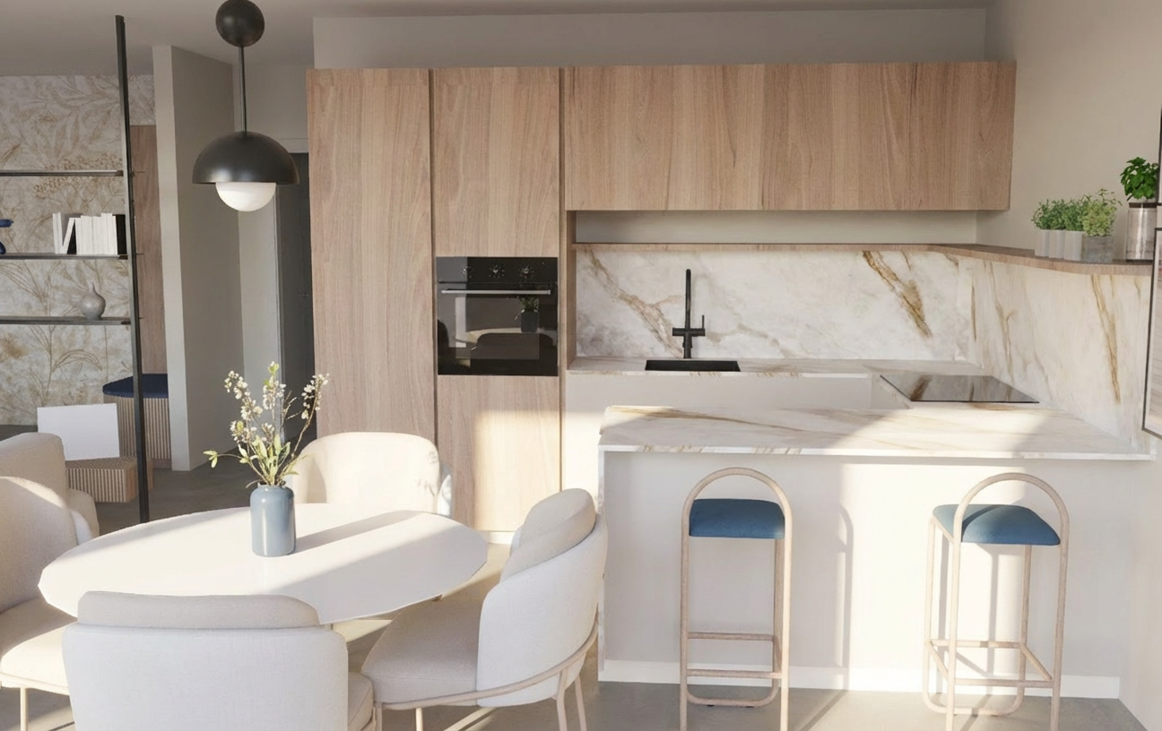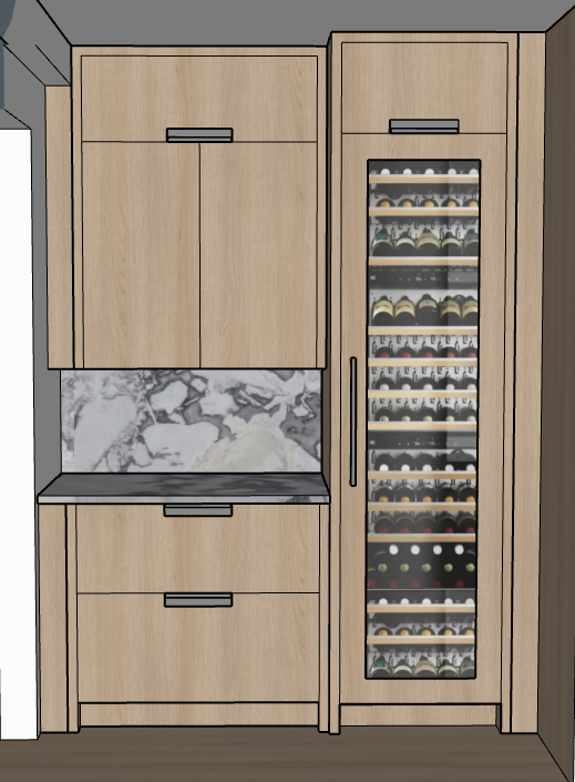 set horizontal handles deeper into doors don t touch vertical handles make wood colors on floor and cabinets match light rift cut white oak make no other additions