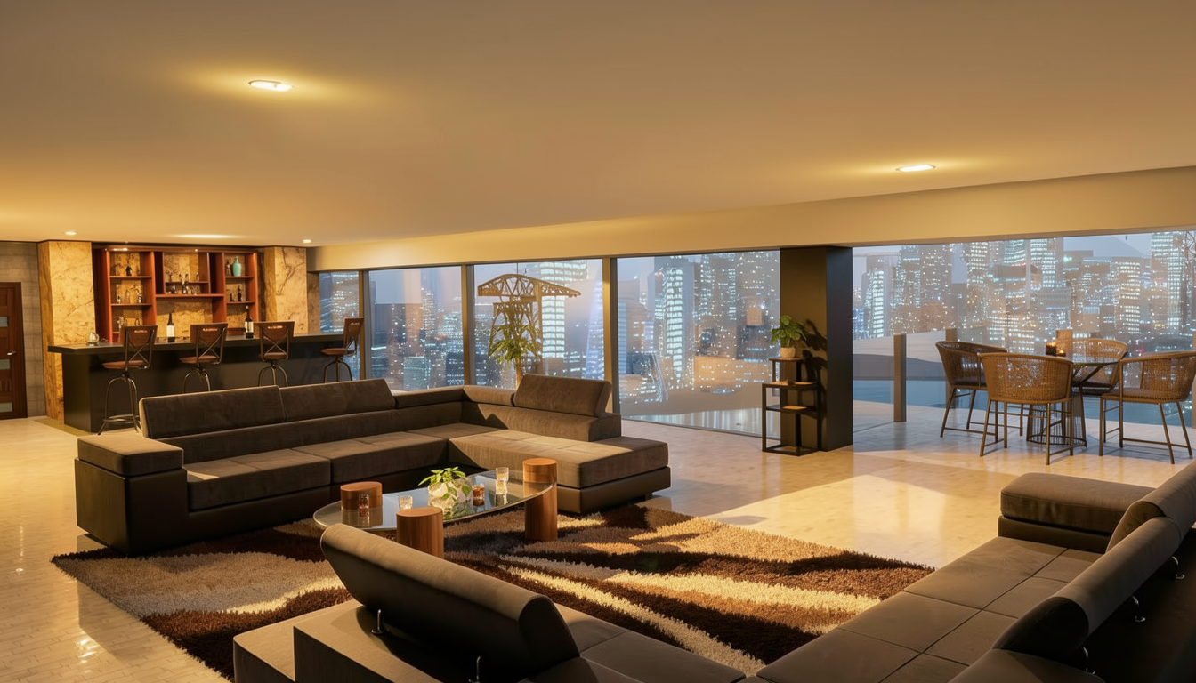 make look realistic and add natural lighting add nice landscaping and surrounding trees add a driveway into the garage that also wraps around the building on the right create a downward sloping hill on the left side of the building