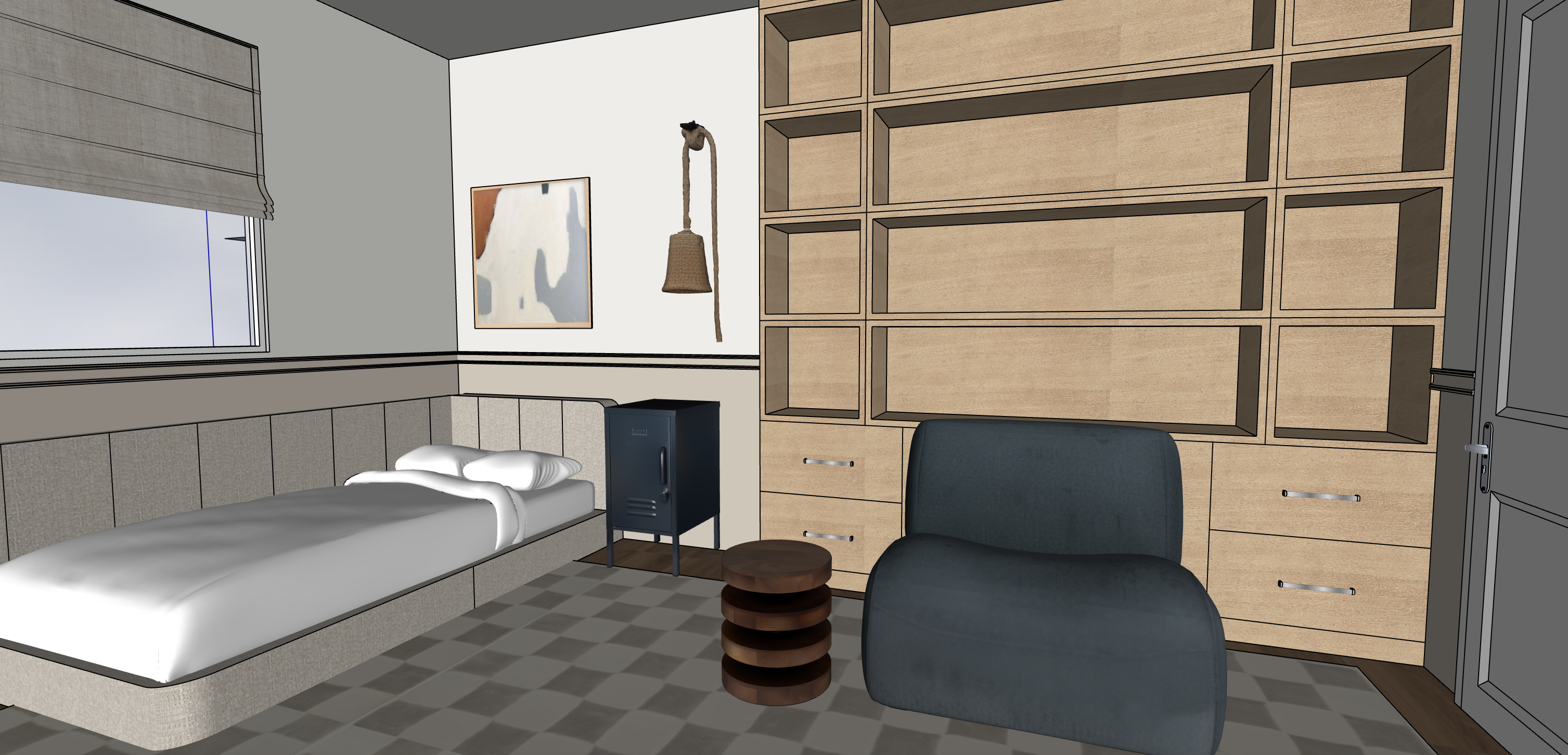 extra large checkered rug in ivory and grey