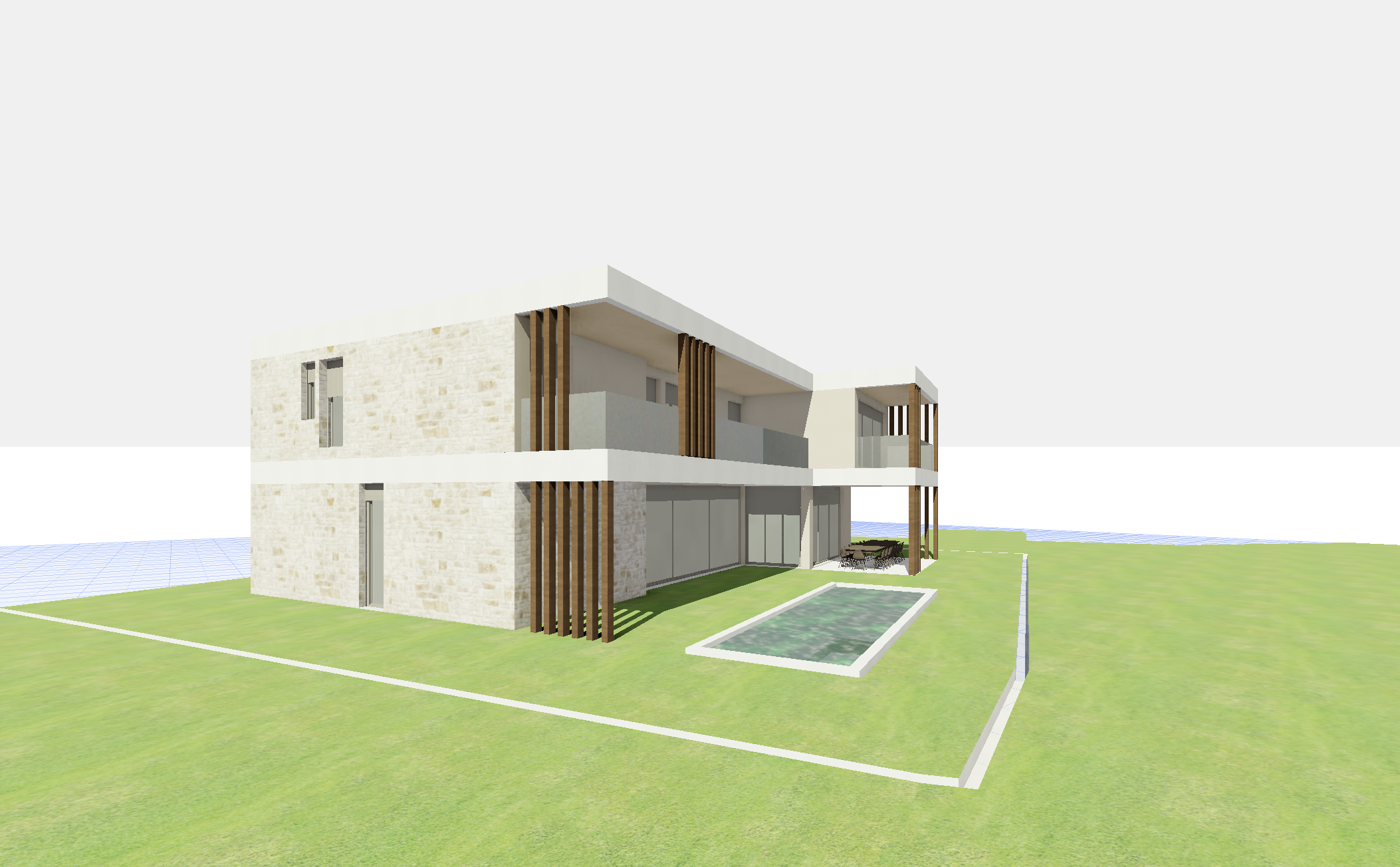lot of reflects and sun light mediterranean pine trees and mediterranean villas on the backgroung the sun at the right