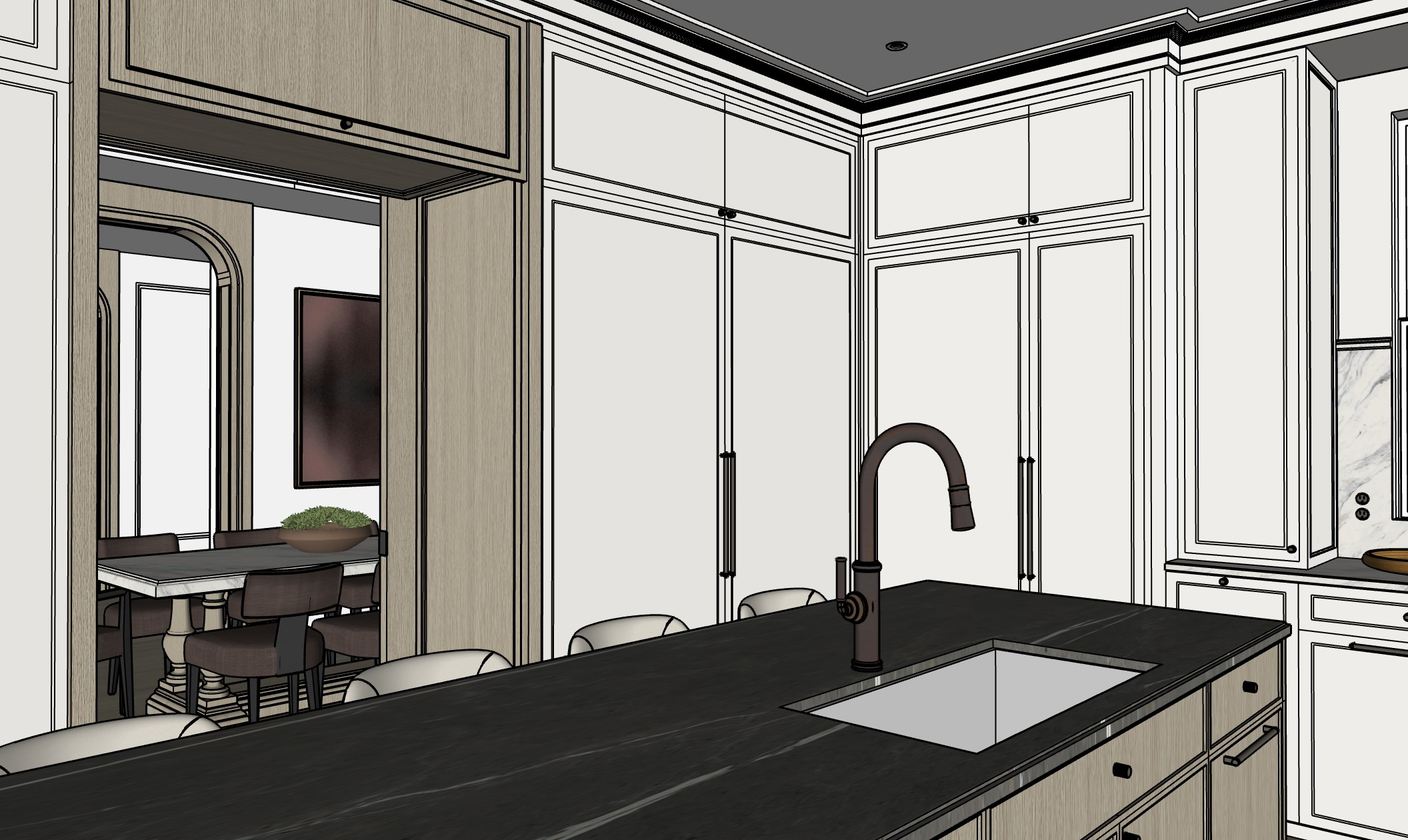 make the wood on the island and on the arches more beige