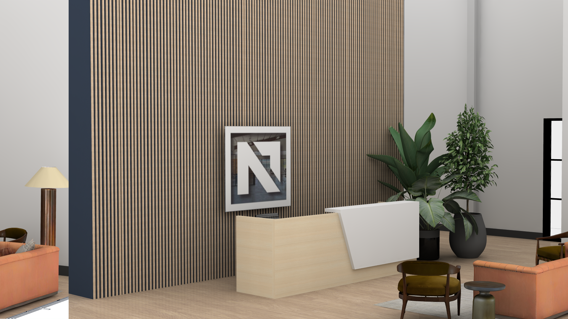 modernist exterior shot modern natural reception area keep walls as is keep flooring as is add lighting architecture