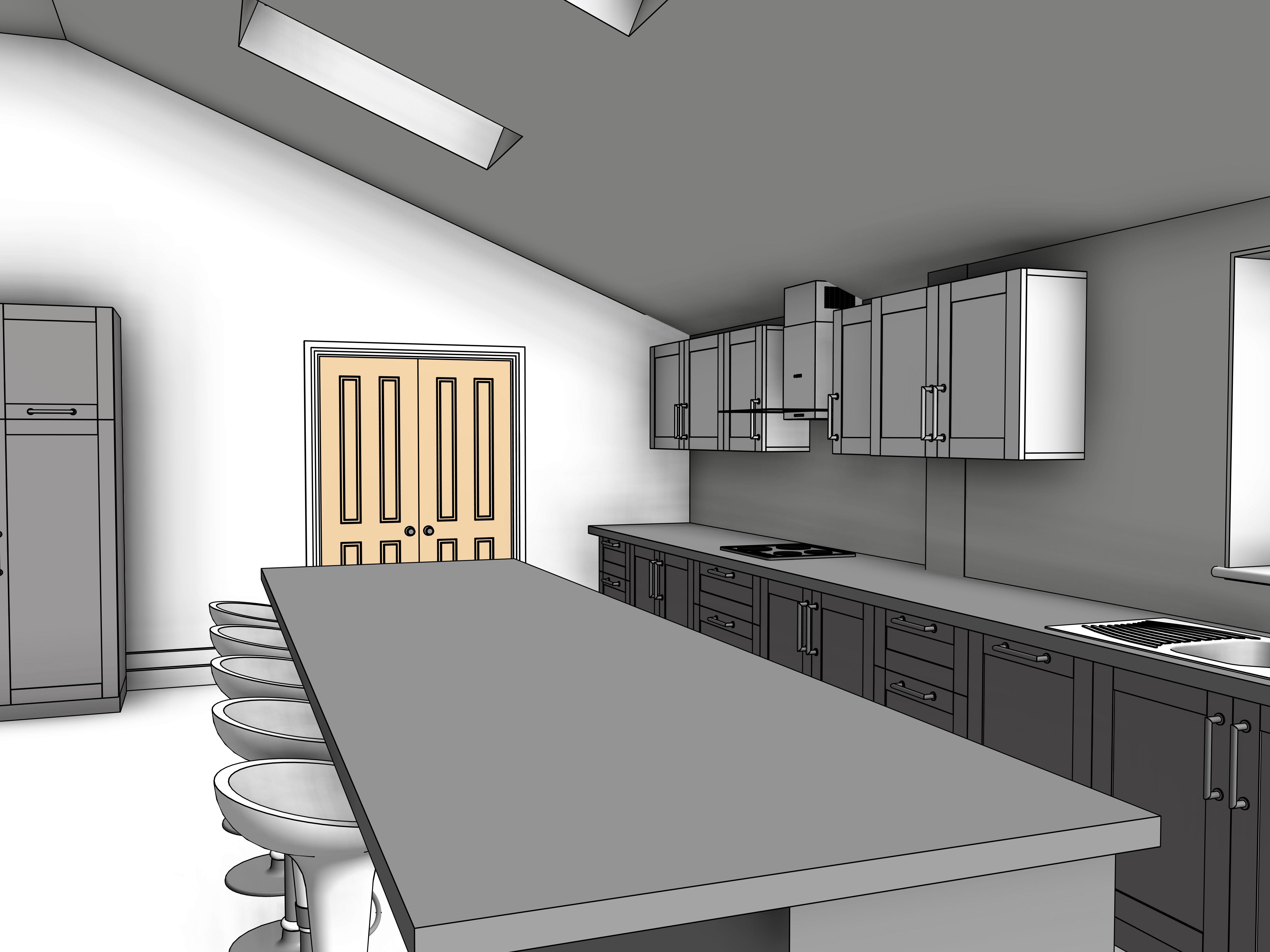 photo realistic render of kitchen