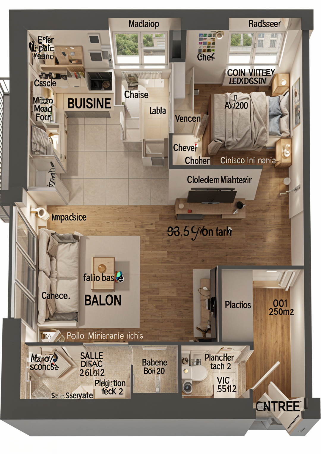 the scene shows an intermediate landing of a staircase where damp patches have appeared that i cannot repair i need to clad the vertical surfaces with a material made of imitation mahogany wood panels up to 3 4 of the total height marking the position of the existing light fixture