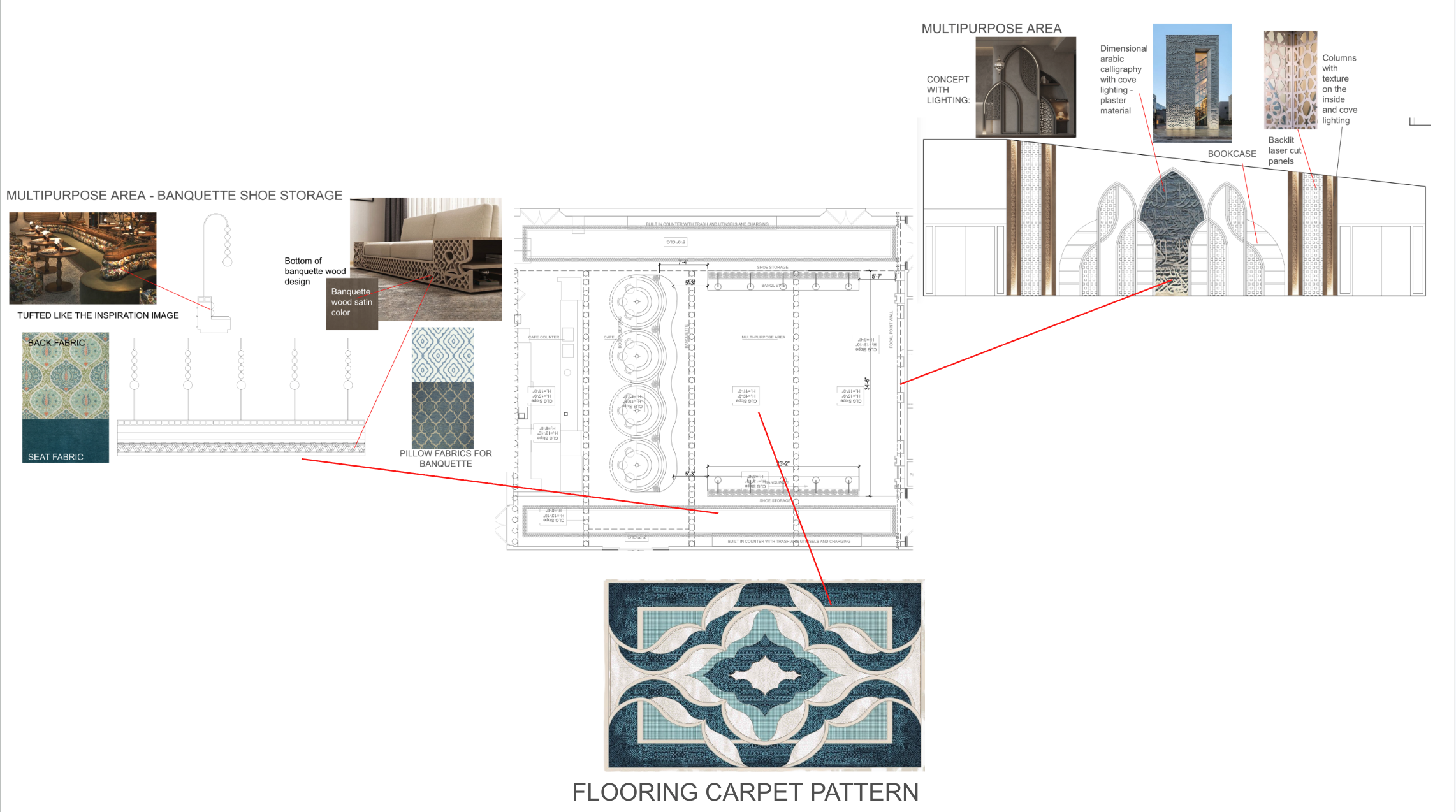 the ceiling is angled with a slope going down from the start at the column on the left anding at the wall on the right