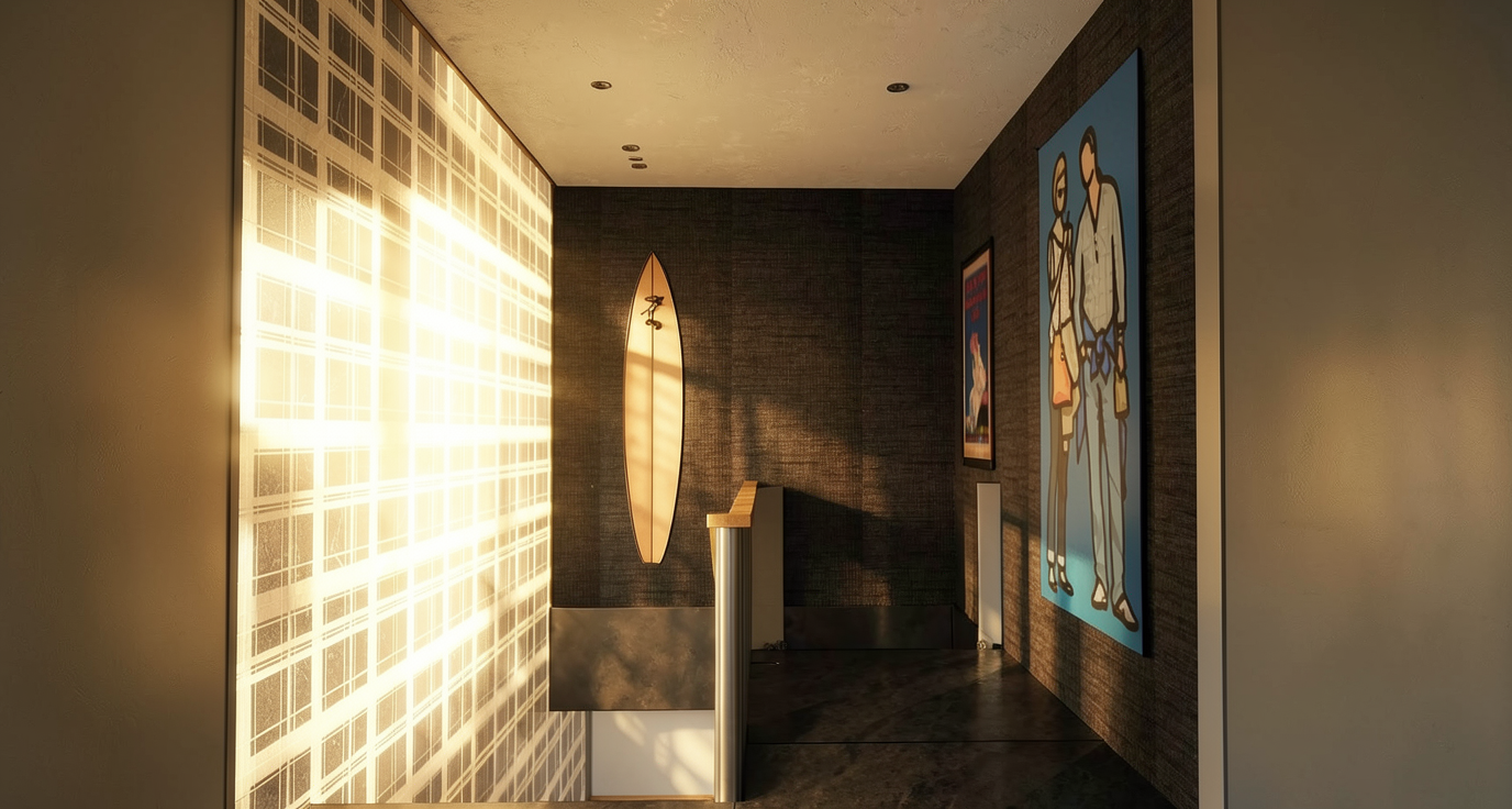 entire left side wall emits back light through surface maintain materials in image