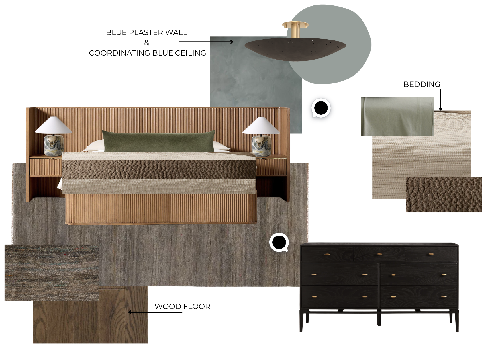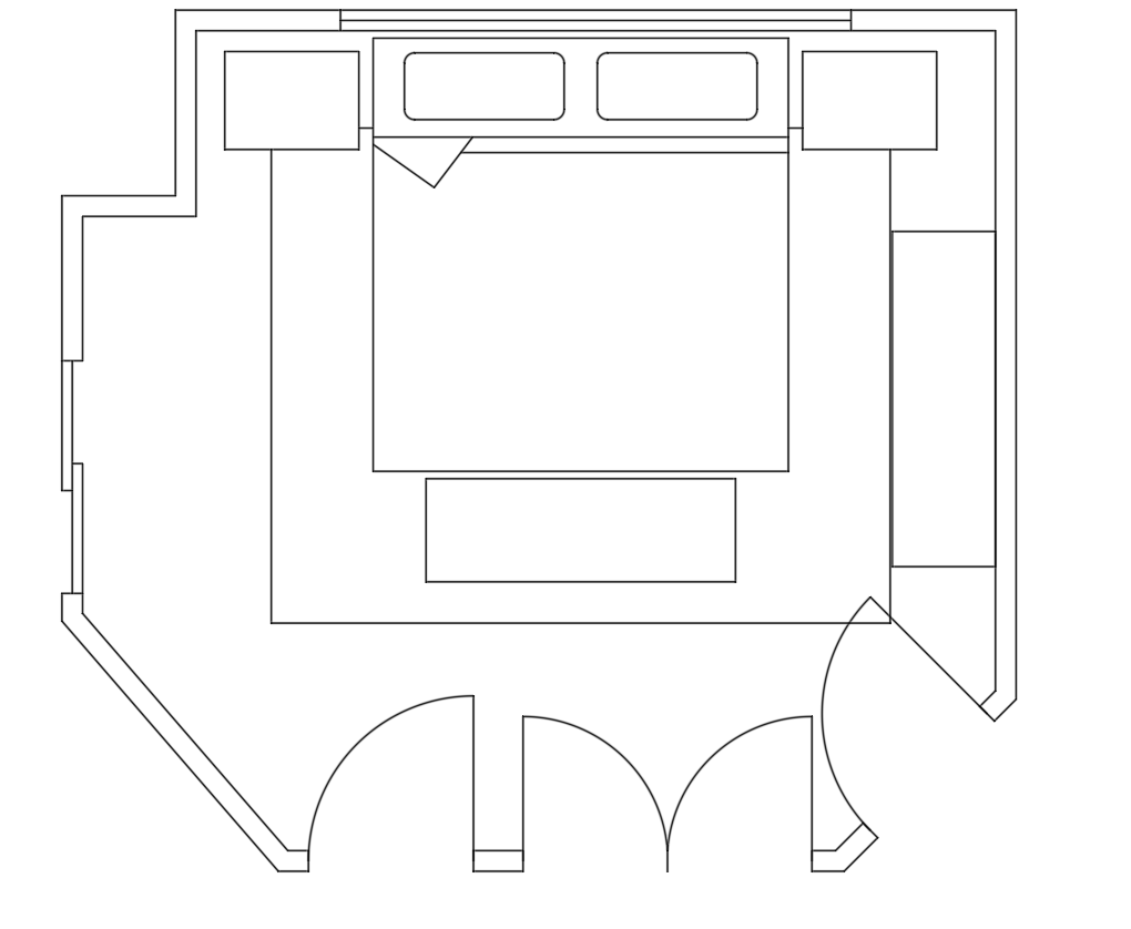 exterior shot created a 3d view of this bed room using 9 ceilings dark wood floor and blue plaster walls with light blue ceiling