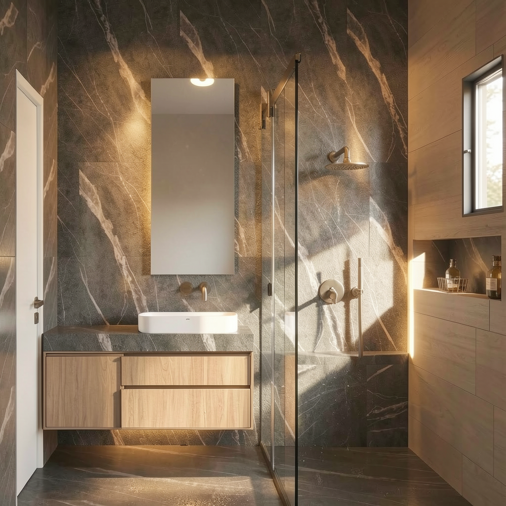realistic architectural photography of interior room maintain original furniture placement and geometry bright daylight vivid colors realistic light bounce sharp focus ray traced reflections on surfaces ultra detailed textures clean and airy atmosphere