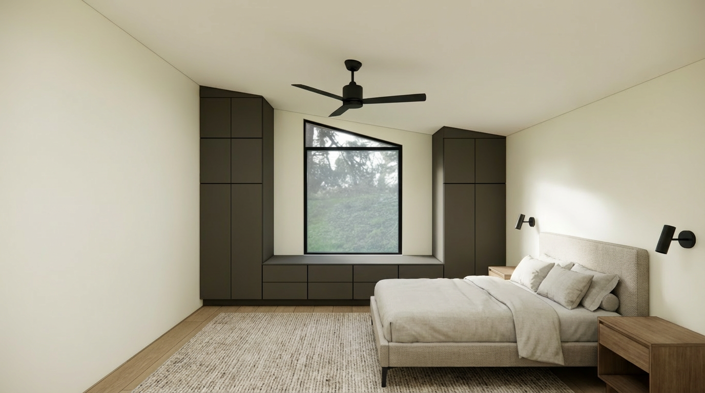 ampliaci n de vivienda tradicional rematada con tablas de madera quemada tiene grandes cristaleras a trav s de las cuales no se ve el interior pero se refleja el exterior la parte de piedra tiene la puerta de tablas de madera termotratada el volumen entre la casa de piedra y la casa de madera es de vidrio ya trav s de el se ve un patio trasero con un peque o arbusto