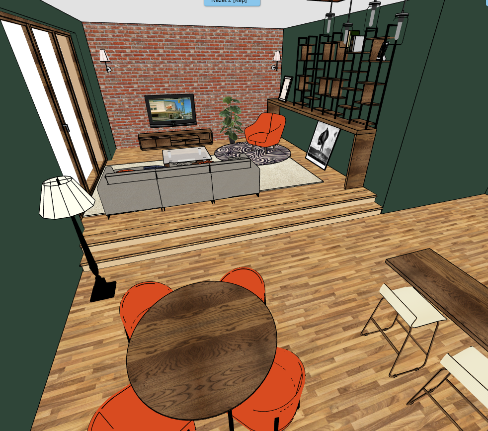 var zsolj kellemes nappali f nyes soft loft nappalit a fotel terrakotta sz n alatta fekete feh r mint s k rsz nyeg a kanap kellemes b zs rajta sz nes p rn k terrakotta sz rk sk k a polc s t t di sz n legyen s t tz ld a k t l pcs alatt ledcs k vil g t helyezz el a nappali mennyezet re egy loft st lus l mp t a h tt rben az tkez sz kek ugyanolyan terrakotta sz n ek mint a fotel a nappaliban a hossz polc al tegy l ledcs kot hogy megvil g tsa a k pet