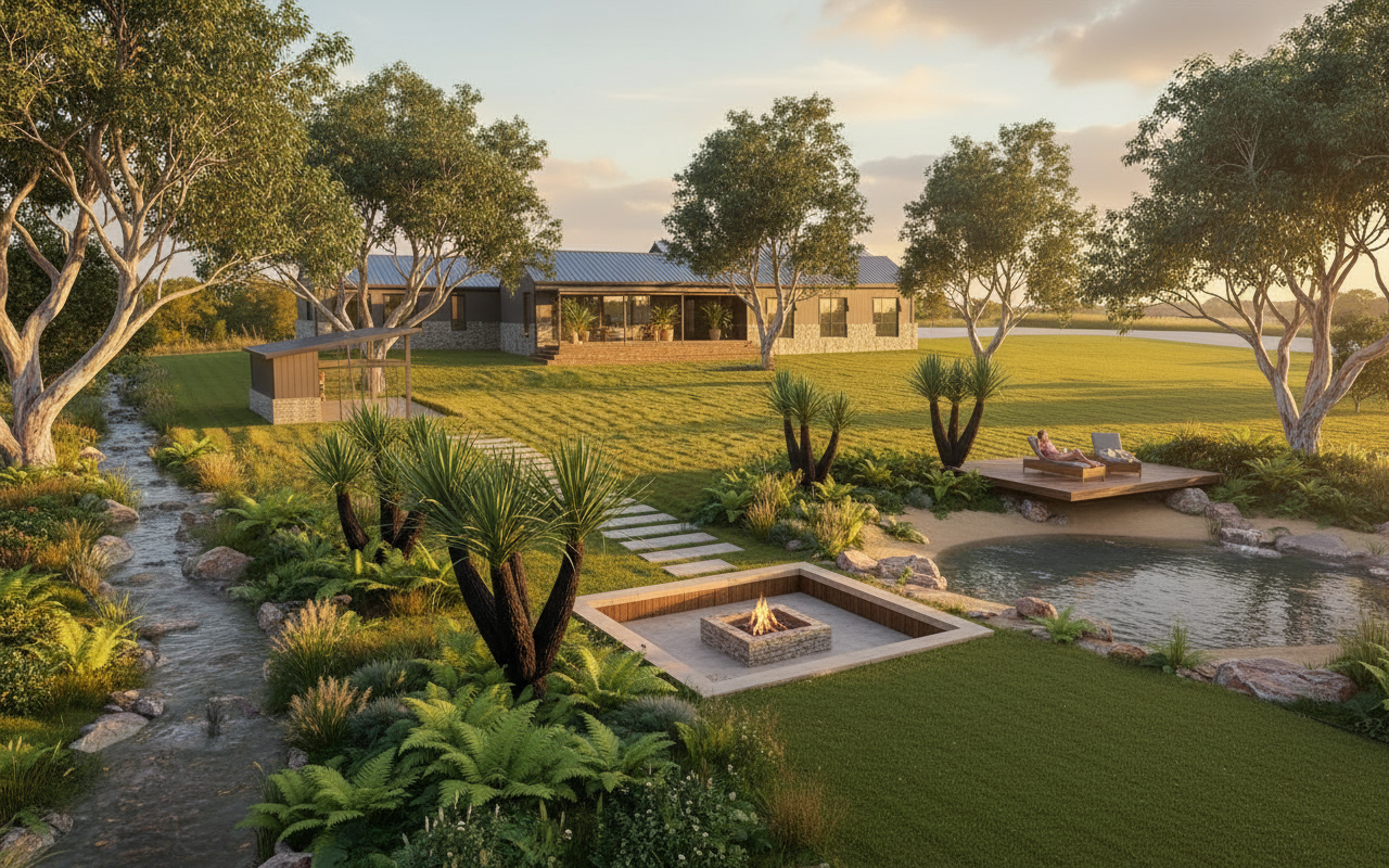 landscape on the right side lawn with suburban landscape wooded site