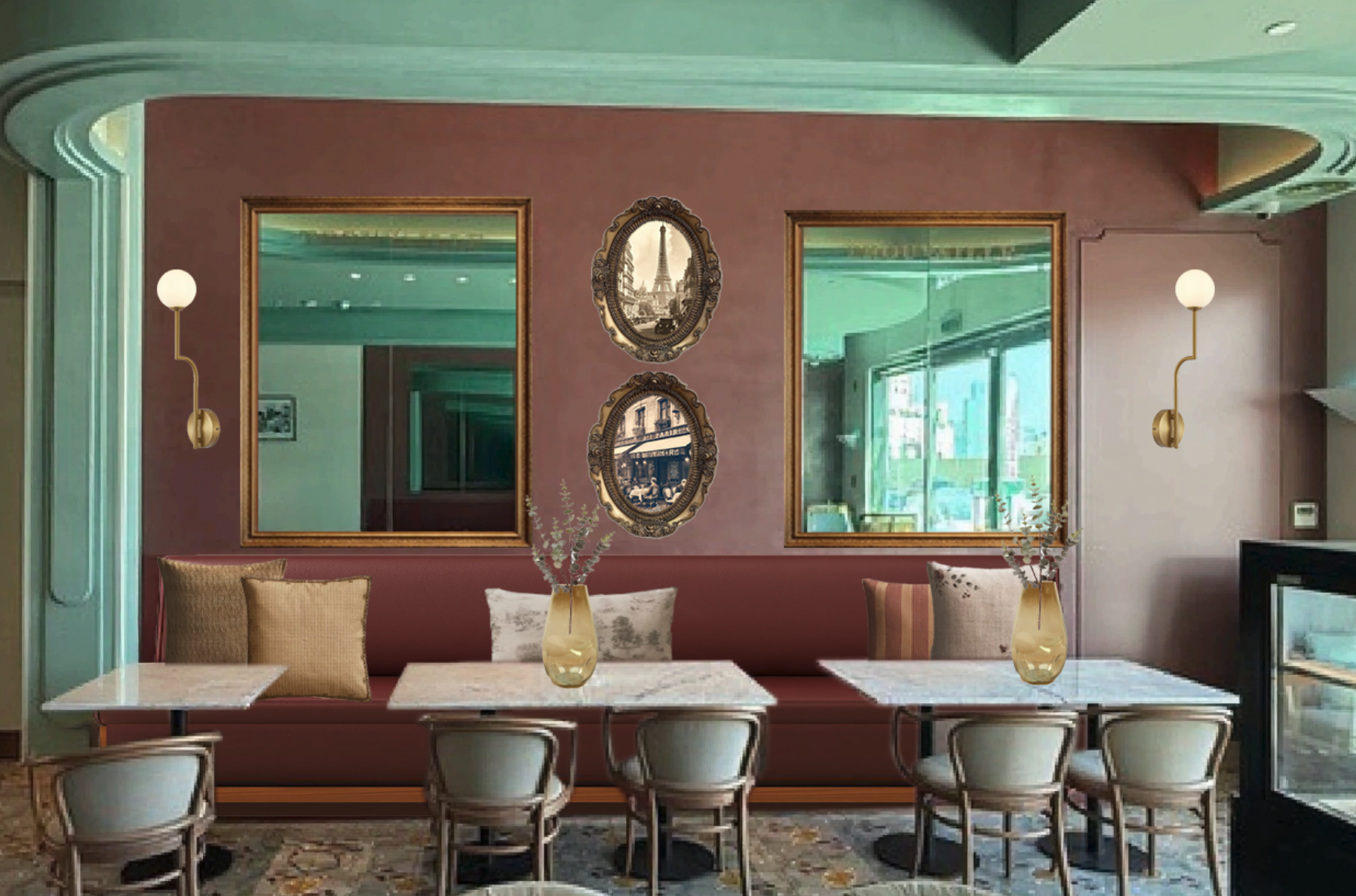 this is photoshopped render i need it to be realistic with a french bistro vibe
