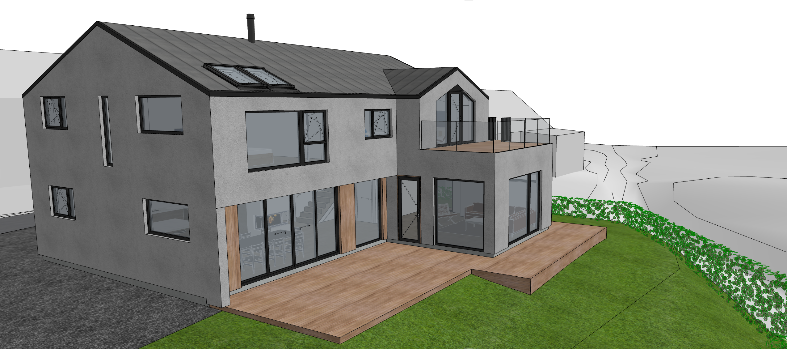 a line of high trees to the left align with the hedge