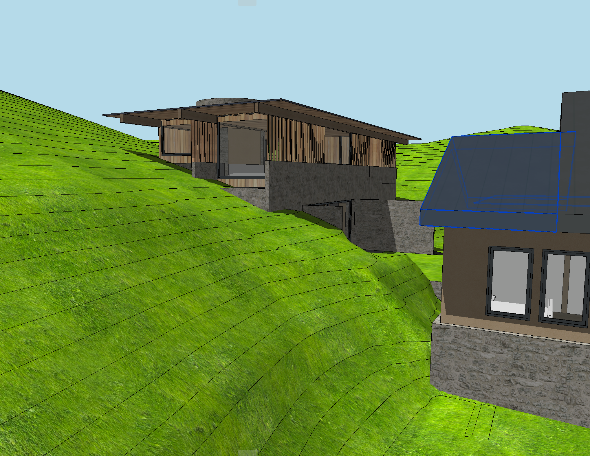 metal roof metal facsia night time with light coming through the wood louver system environment to be sun valley idaho
