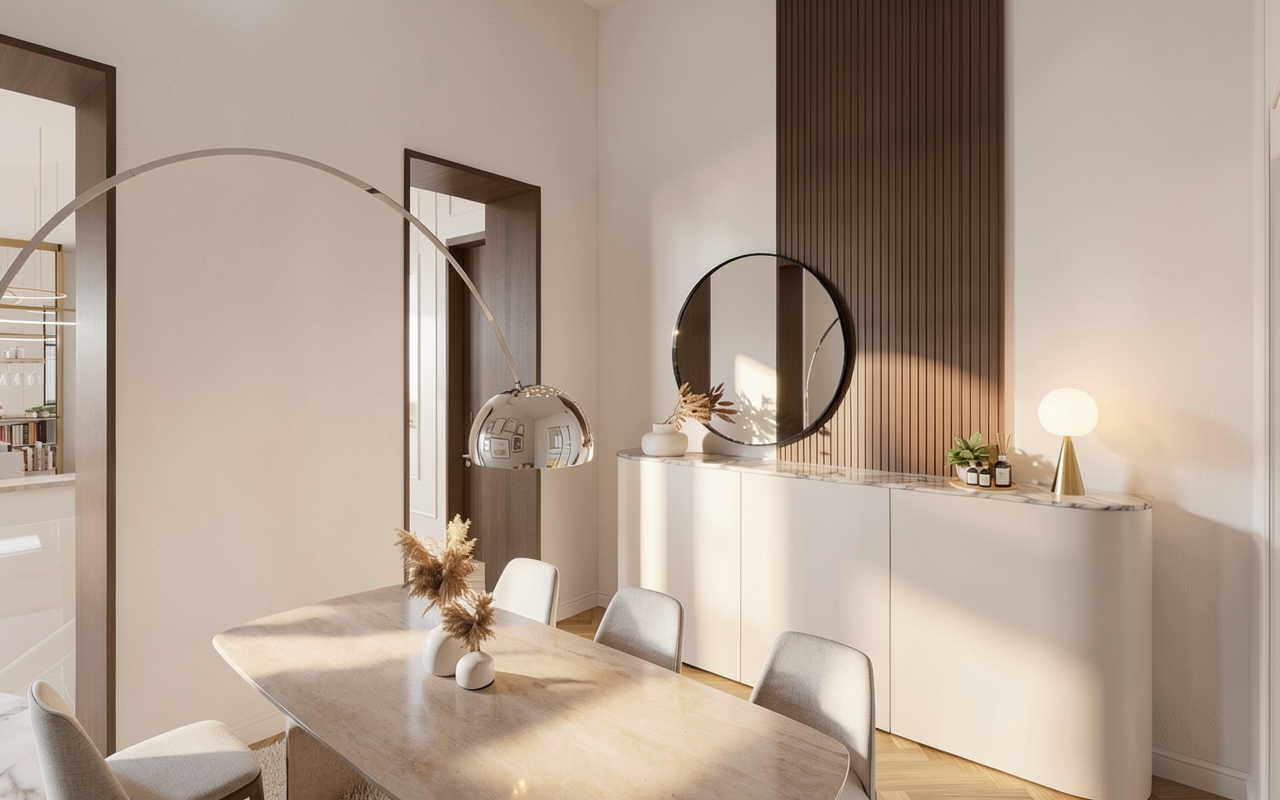 transitional modern space with clean rich colors