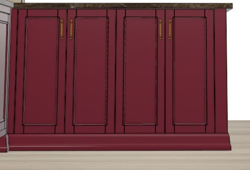 the cabinets are painted high gloss red