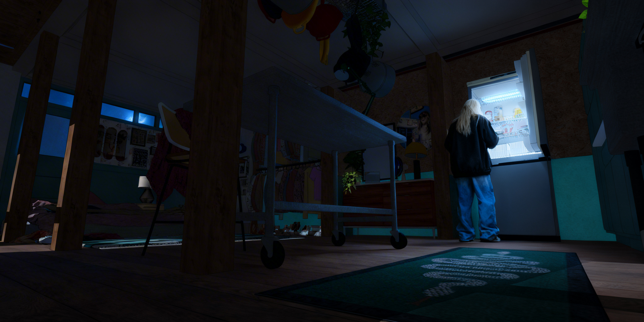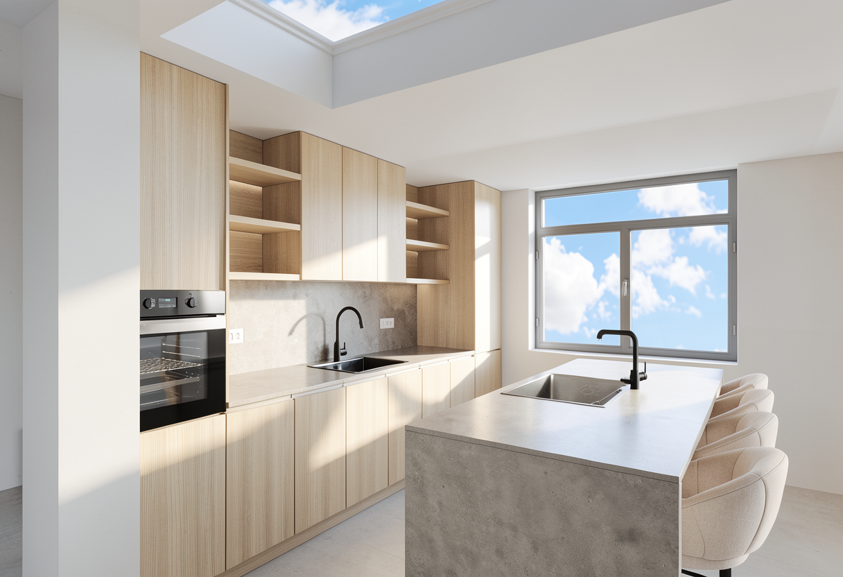 genau dieses rendering berarbeiten fotorealistisches innenraum foto exakt dieselbe perspektive und kameraposition wie das hochgeladene referenzbild 100 identische raumgeometrie rechts hinten ist die dusche auf der linken seite einen treppe bers eck mit indirekter beleuchtung der untersten beiden tritte vollfl chige horizontale jalousien ausserhalb der fenster alles beigen w nde und der beige boden ist homogener hellbeiger kalkstein visso montenegro platten 80x40 cm alle anderen w nde und die decke sind weissputz ral 9016 das fenster in front hat auf der linken seite einen transparenten beigen vorhang beim fenster auf der linken seite ebenfalls ein raumhoher vorhang rechts hinter der wanne ein modernes bild an der wand am boden steht vorne im bild auf der linken seite eine grosse moderne topfpflanze auf der linken seite hat es auf dem podest b cher und accesoires eine sehr h bsche asiatische frau um 25 sitzt im mit wasser gef llten tauchbecken raum zus tzlich k nstlich ausleuchten mit schwarzen runden deckenspots sanfte realistische schatten weiches nat rliches tageslicht mit schatten der jalousien an den w nden realistische materialien hochwertige oberfl chenreflexionen nat rliche farbwiedergabe golden hour feeling hell ausleuchten das bild muss wie eine professionelle fotografie aussehen es soll ein echtes und reales foto sein canon eos r5 35 mm festbrennweite f 2 8 hyperrealistisch dslr qualit t raw aufnahme 8k aufl sung extrem scharf perfekte tiefensch rfe professionelle architekturfotografie