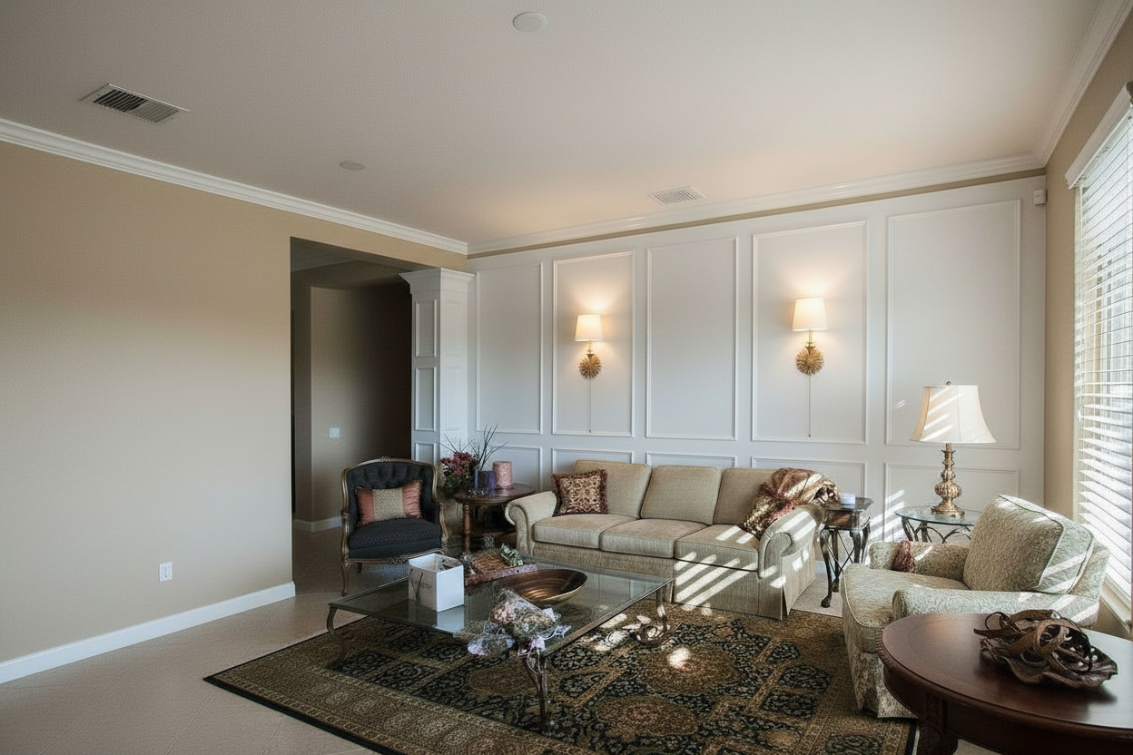 replace tile on floor to wood flooring as referenced maintain everything else the same