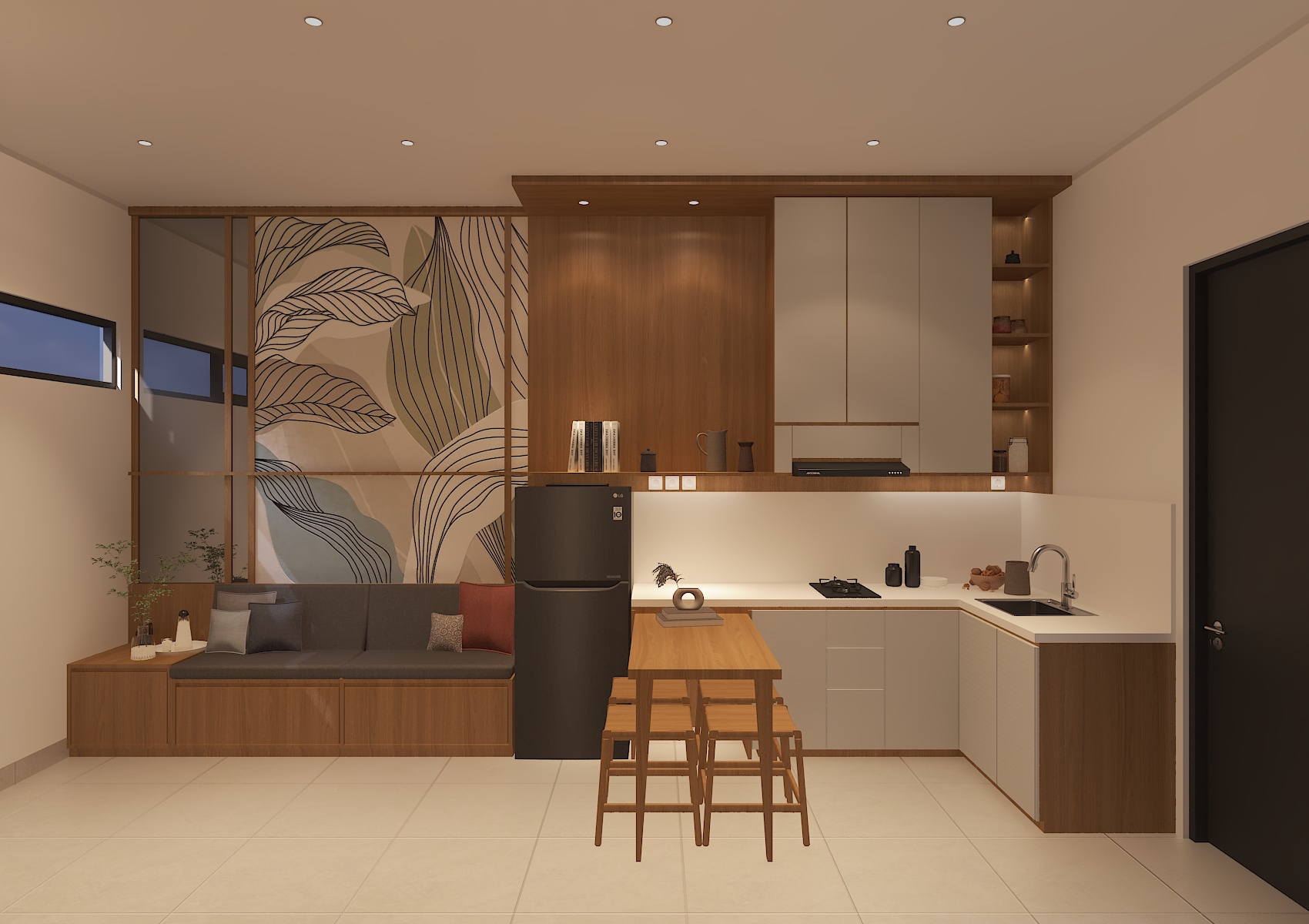 make it into real life photo with very ultra realistic japandi style interior with very natural lighting indoor