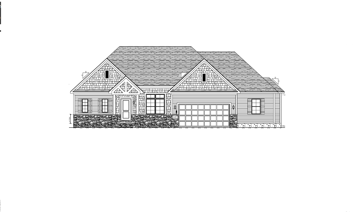 make as photorealistic as possible while keeping textures the same as selection professional landscaping in a lightly wooded scene with good lighting match materials to plan and remove any text dark grey siding black trim windows garage door black porch post and trim the area above the front door is open to the house