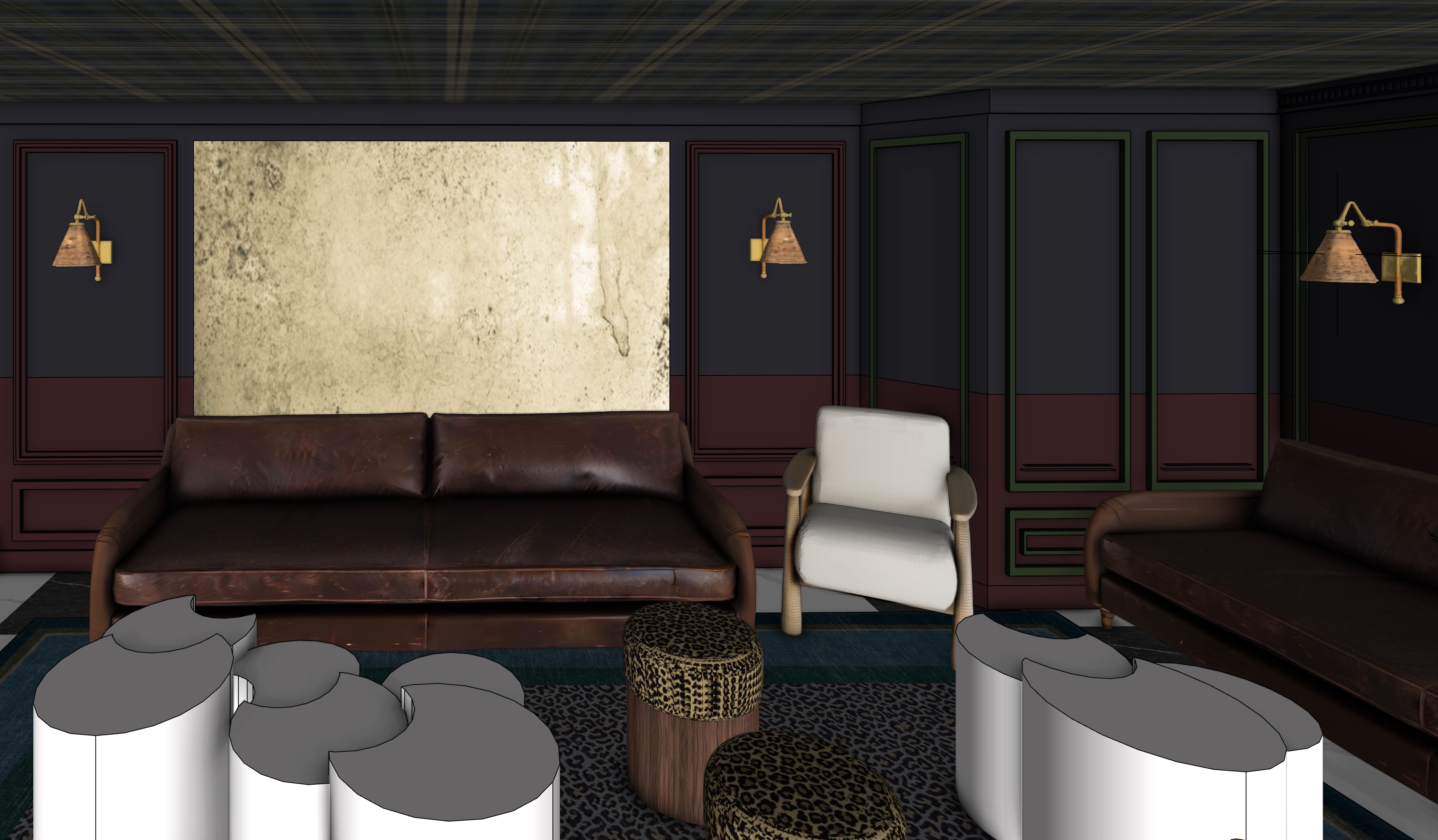 add soft moody lighting at 2700k in the sconces but brighten the overall room slightly make it moody