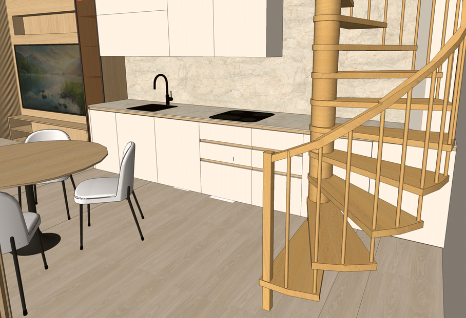 render a photorealistic interior visualization keep the materials and furniture layout exactly as shown in the image add little bit of minimalistic decorations
