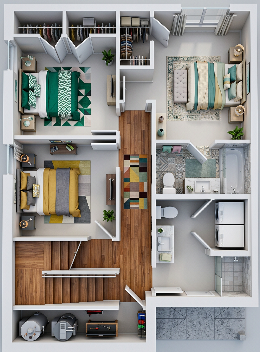 maintain geometry and use natural colors don t add d coration keep door and windows