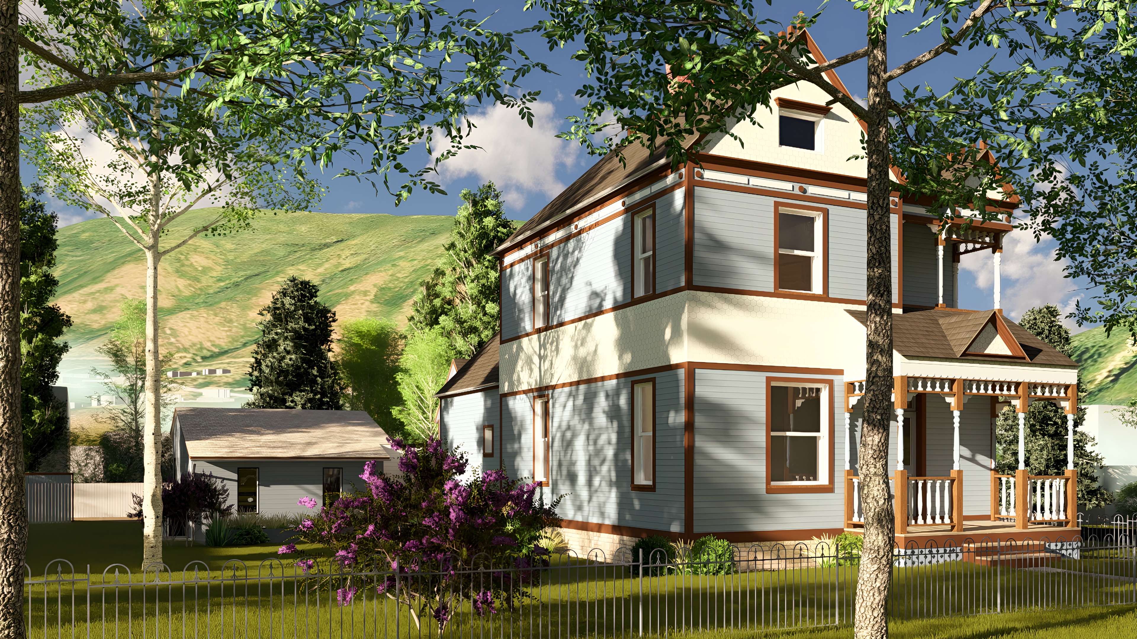 maintain material appearance and detailing enhance landscape features and make the sky and mountain in the background more realistic