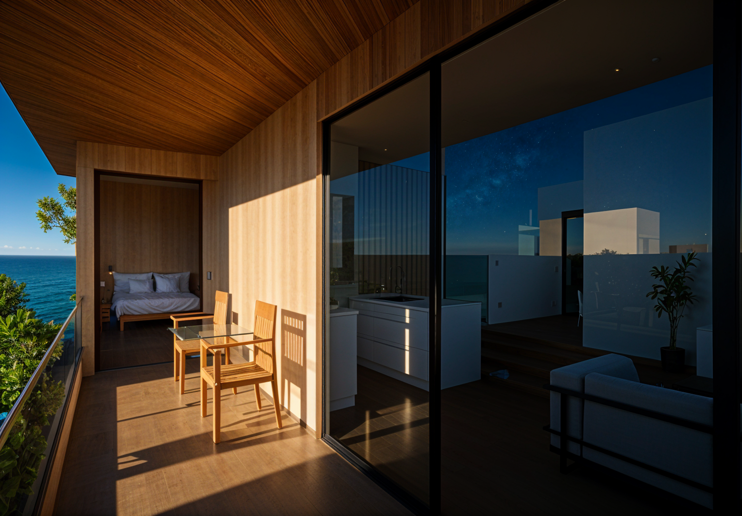the picture shows a new rescue station at a a dawn rising sun is shining people are walking white vans are rescue vehicles with lights on in the partially damp asphalt surfaces and sidewalks covered with light concrete slabs in front of the building reflections of the sky and nature and the building can be seen behind the building is a spring colored forest in light spring shades the light of the picture is slightly dark with a high depth the vehicles have lights on at the entrance are two rescue vehicles and two doctors there is a light shining throw the windows a train is passing by on the back left