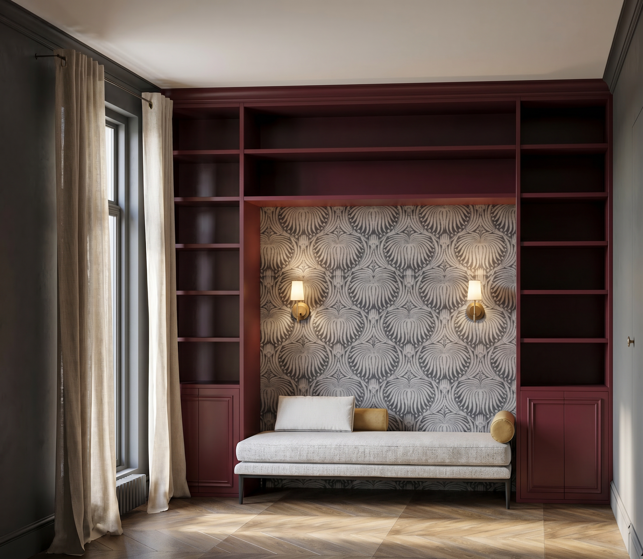 please correct my render keep the materials and colours bur correct the entrace windows triangle on both sides area also glass windows the antrance metal ir the same green colour as in sketch fasade plaster is rose keep daylight but not to bright dont show the interior of the building in windows