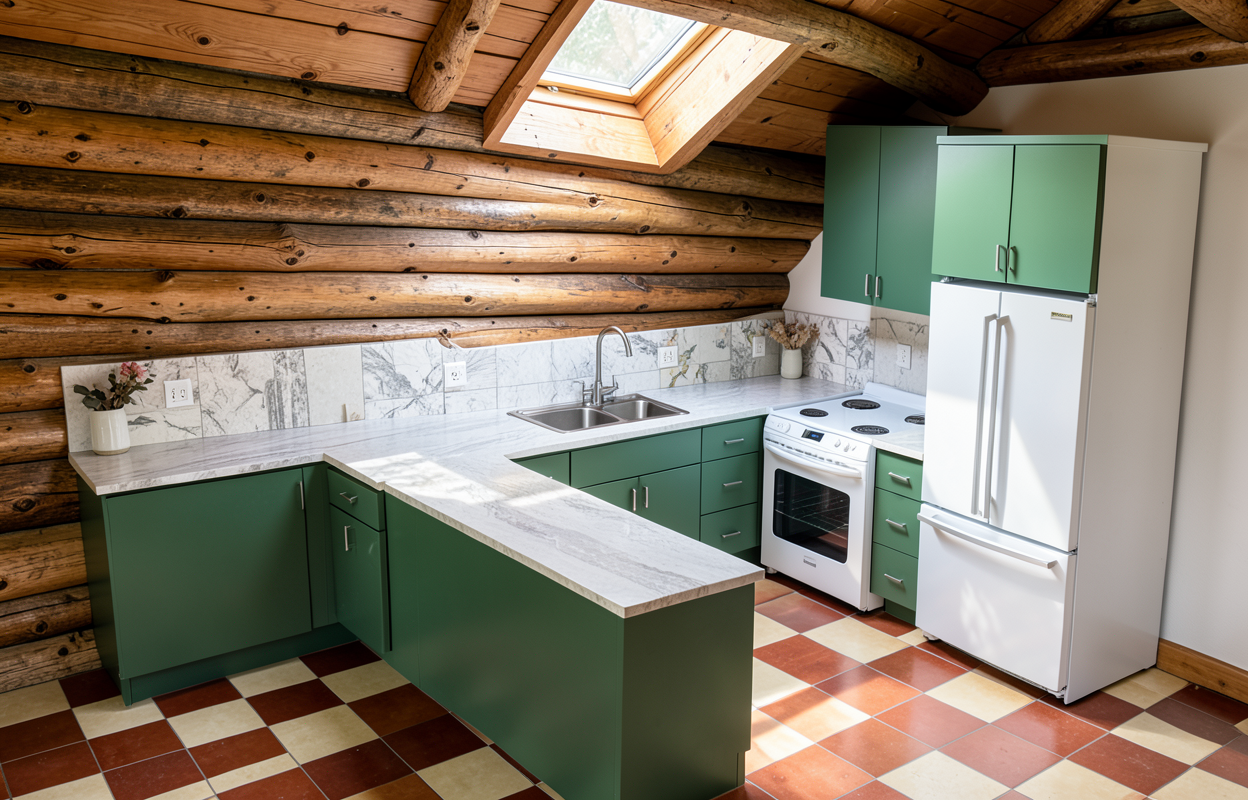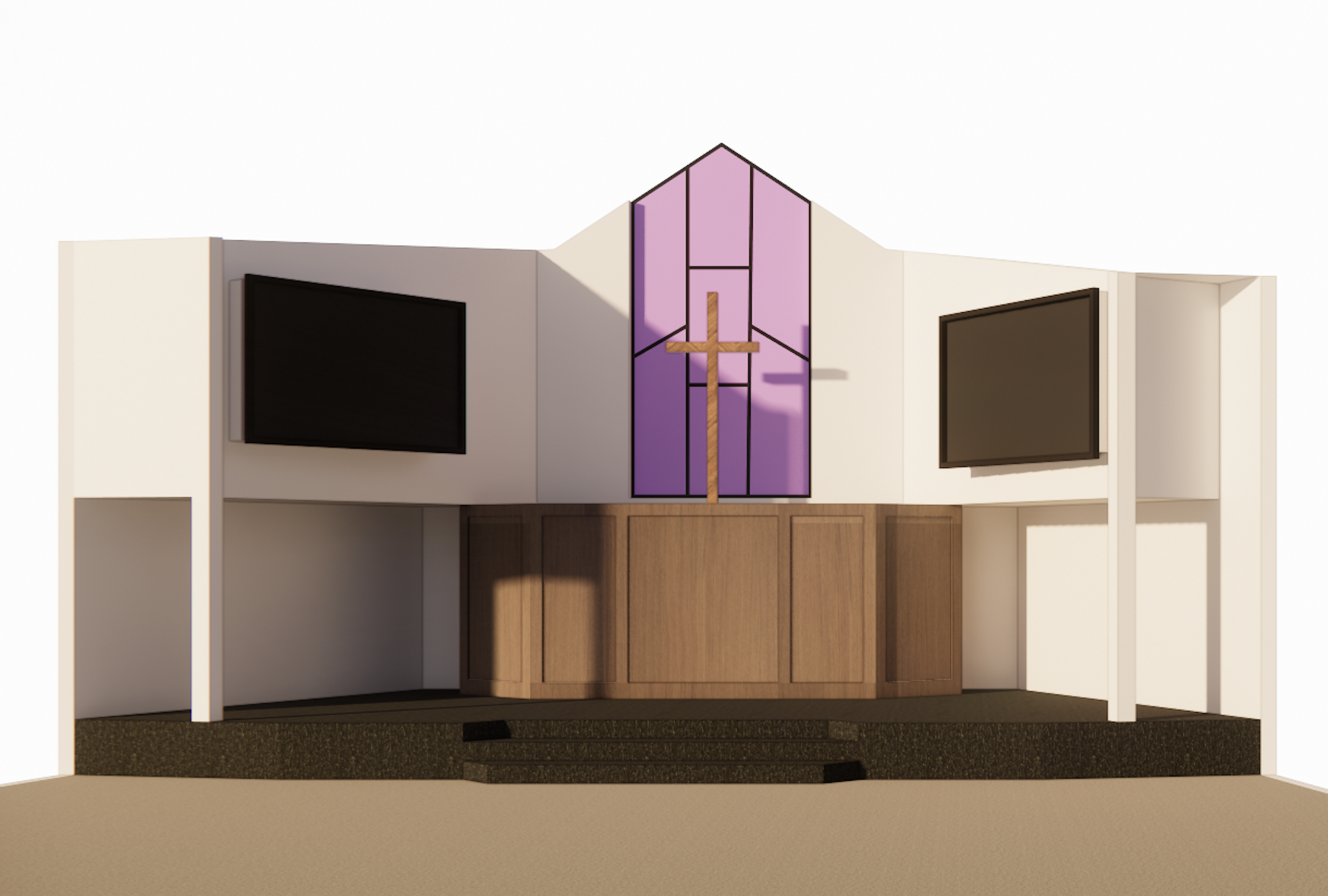 must be a cedar wood ceiling with no beams purple stained glass please
