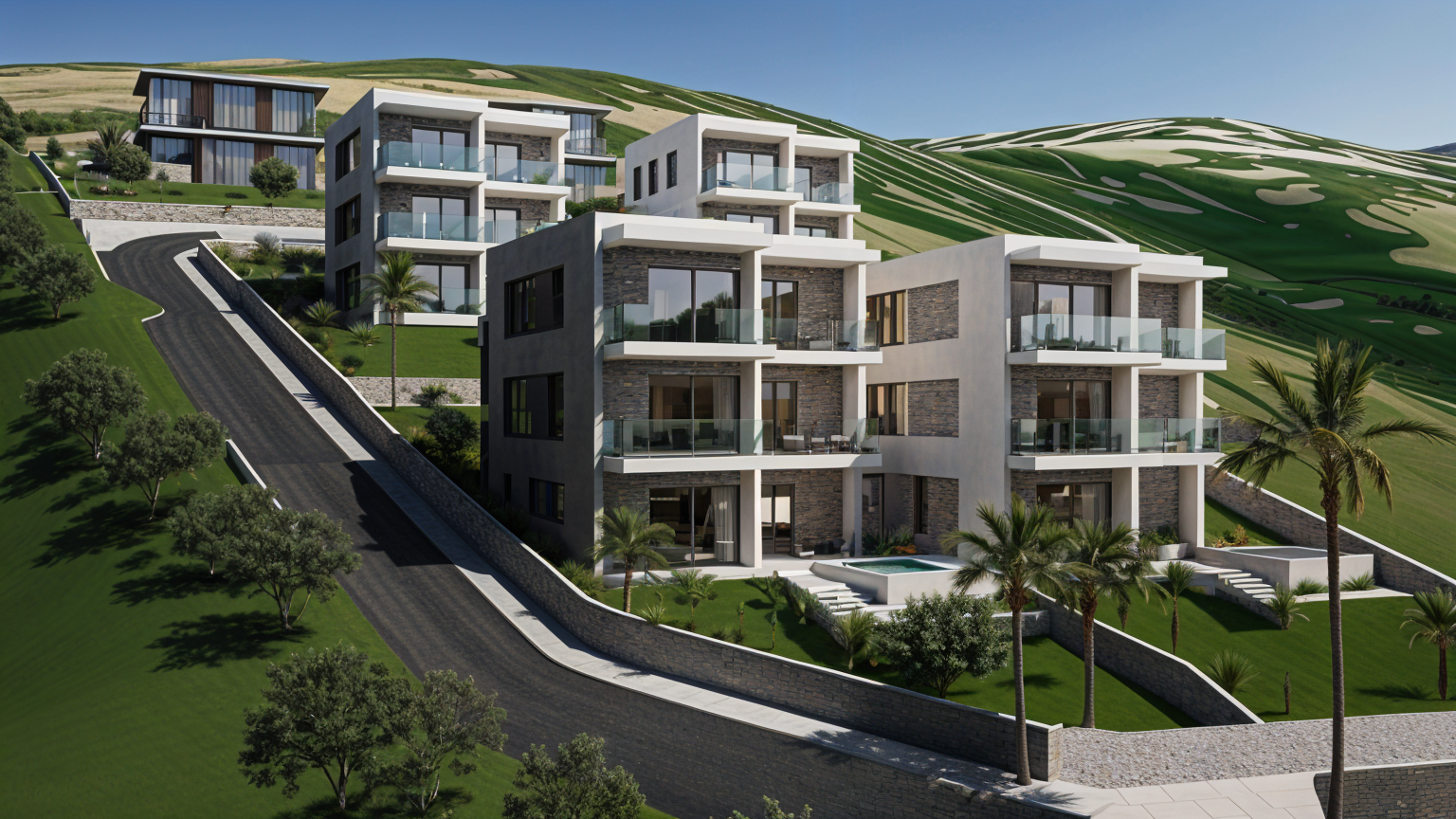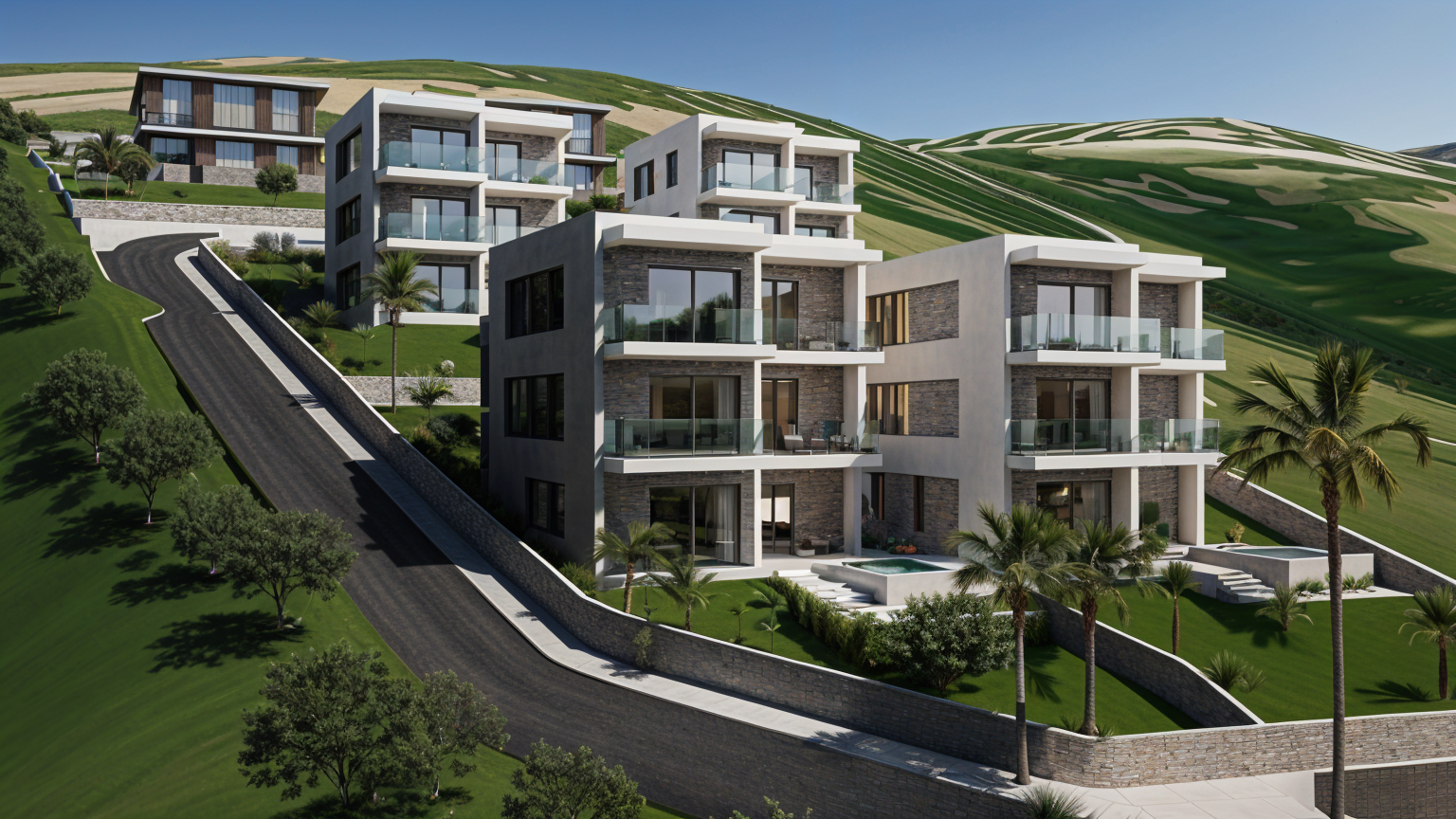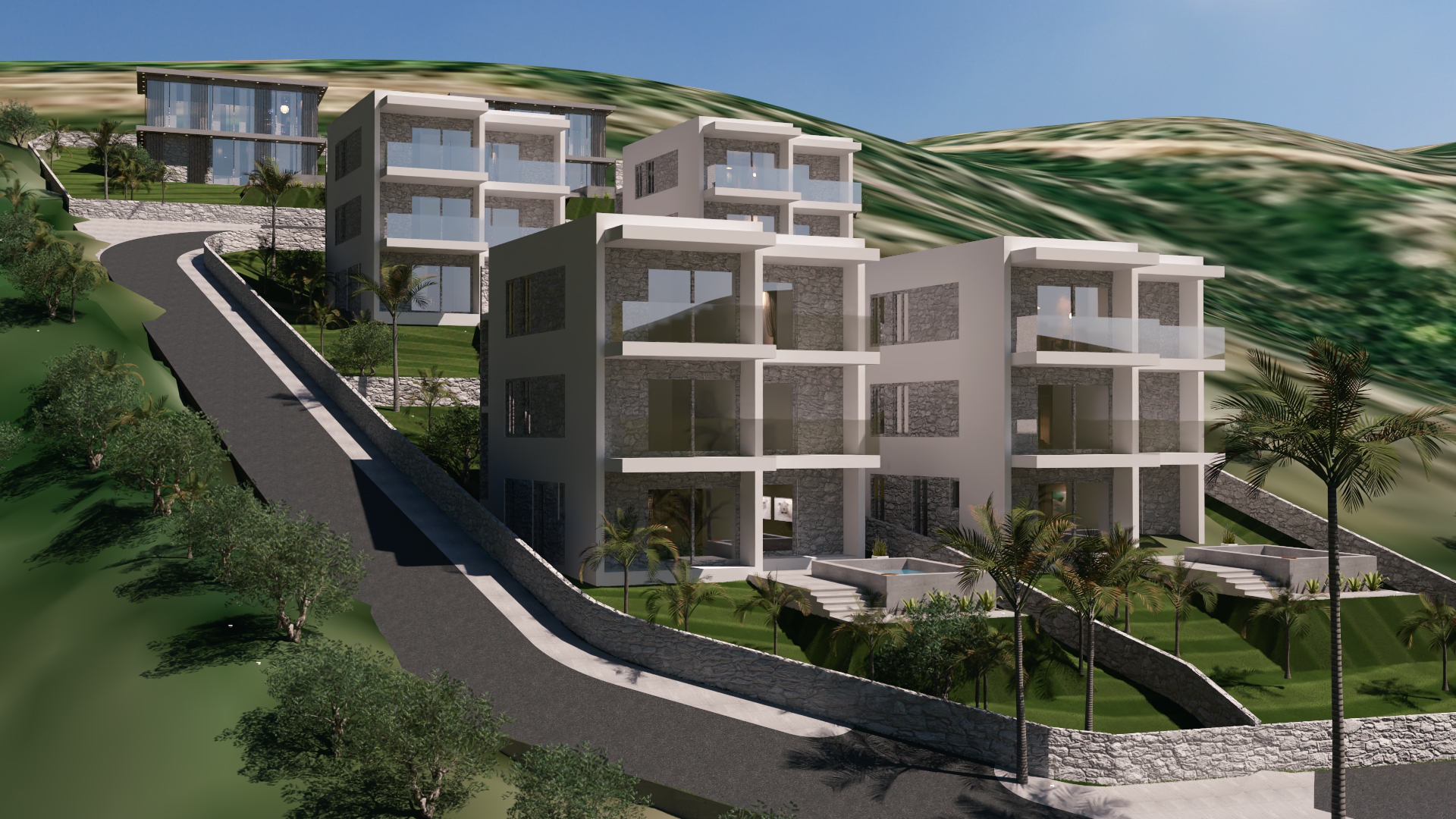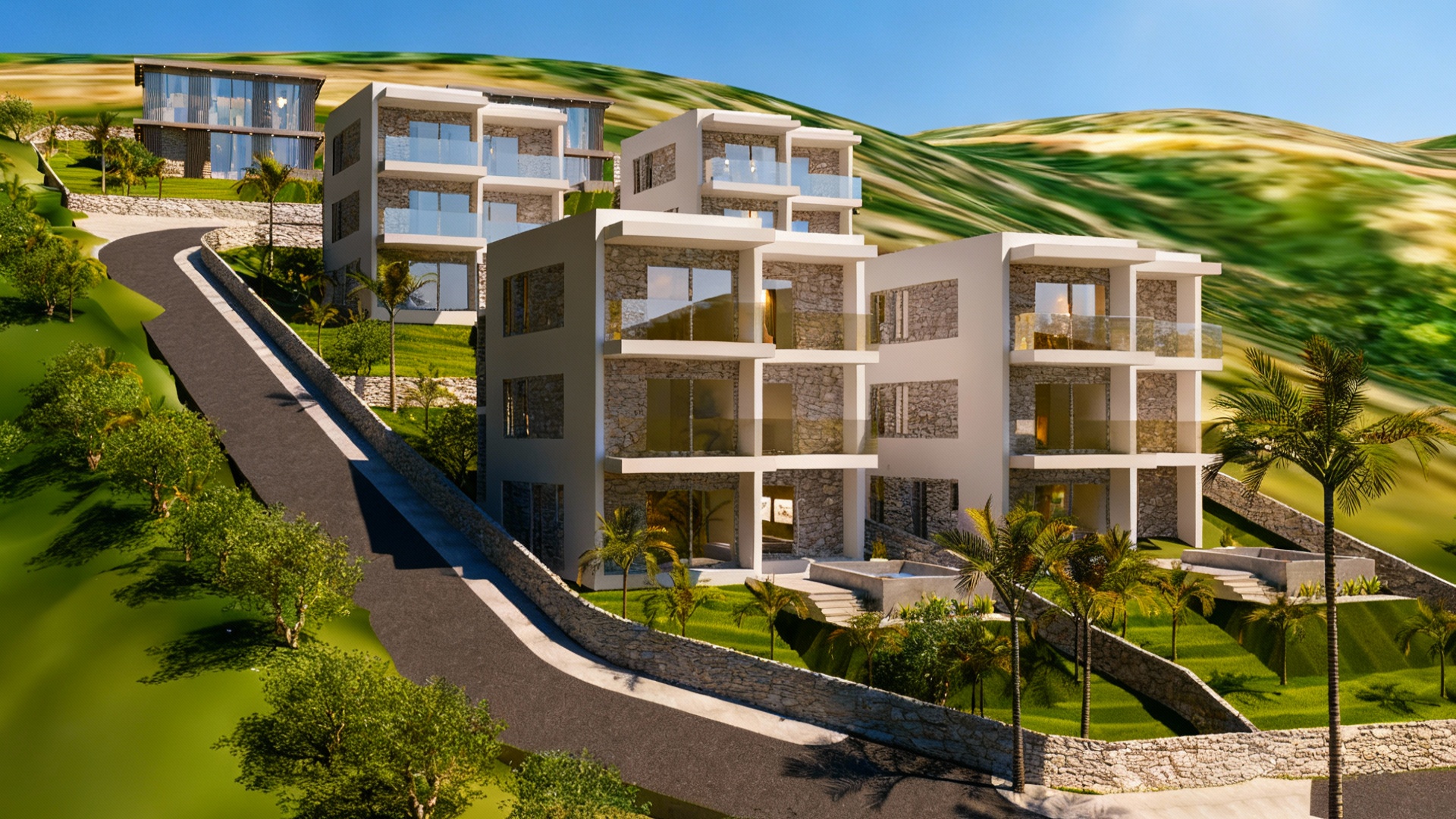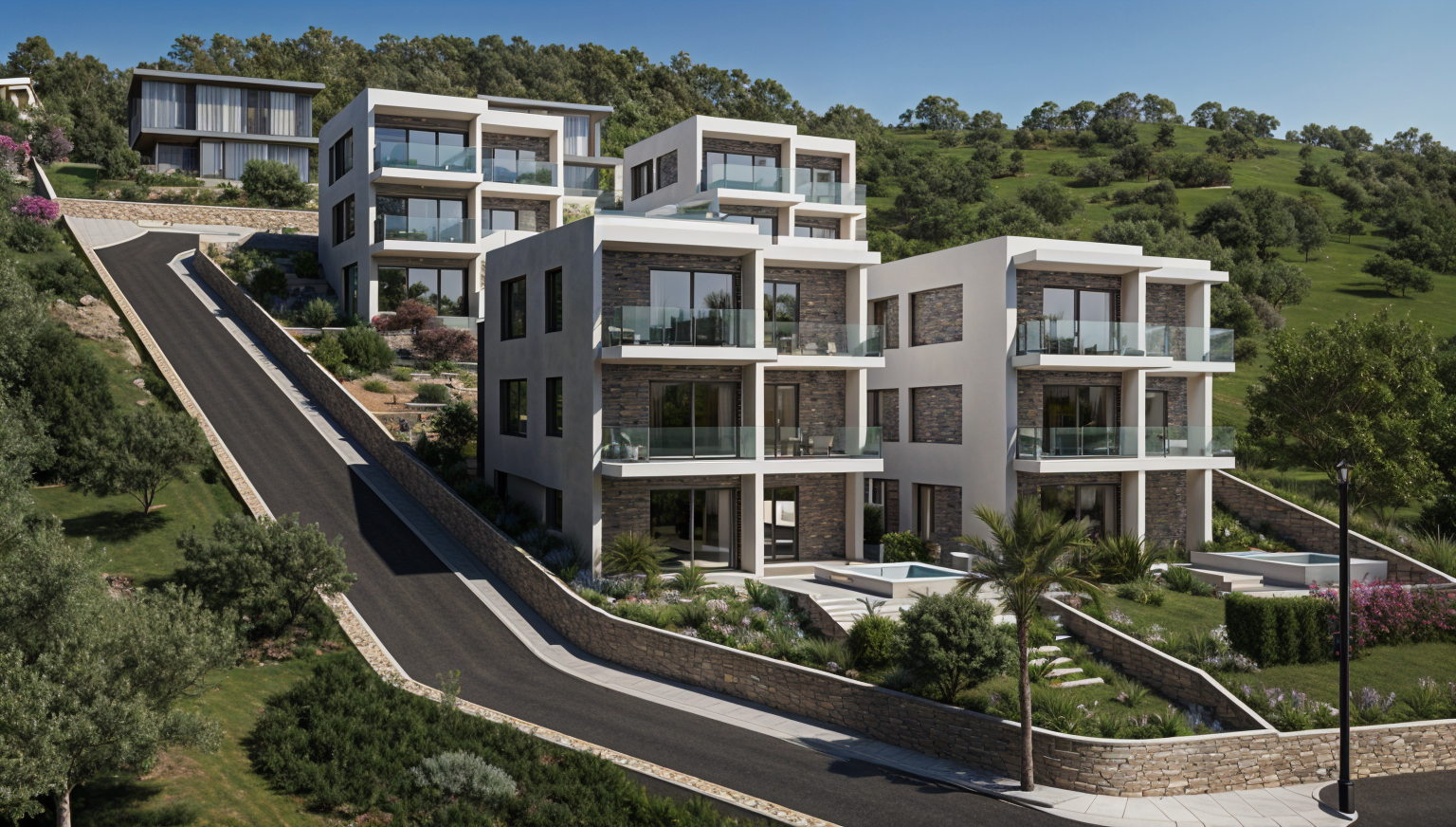 mediterranean landscape with olive trees and stone walls