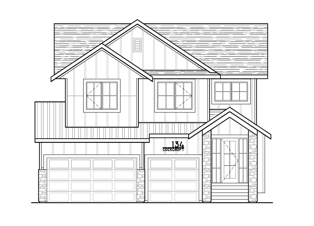 render this home using modern contemporary colours tones use a mixture of stone stucco and board and baton also be sure to landscape the front year with front concrete driveway in the background behind the home have a visual of park space