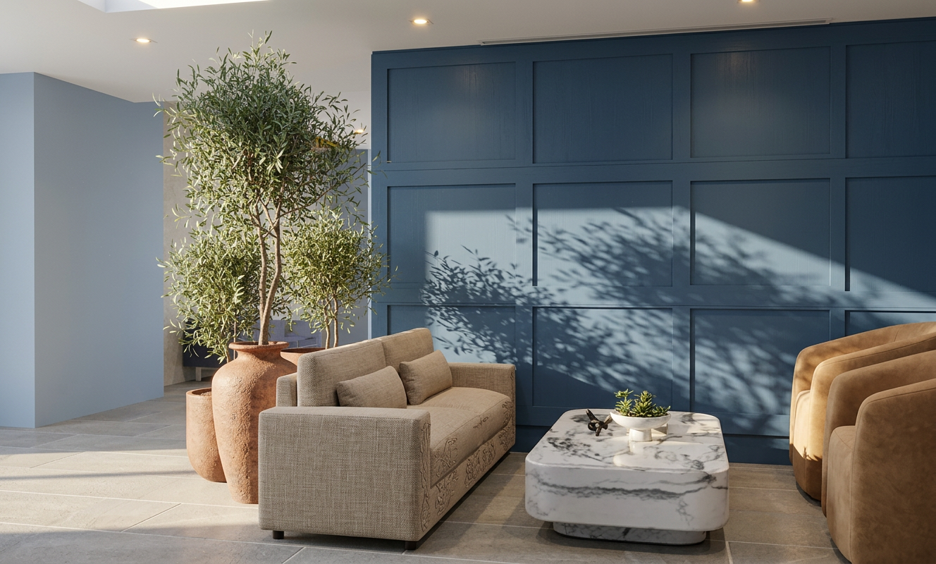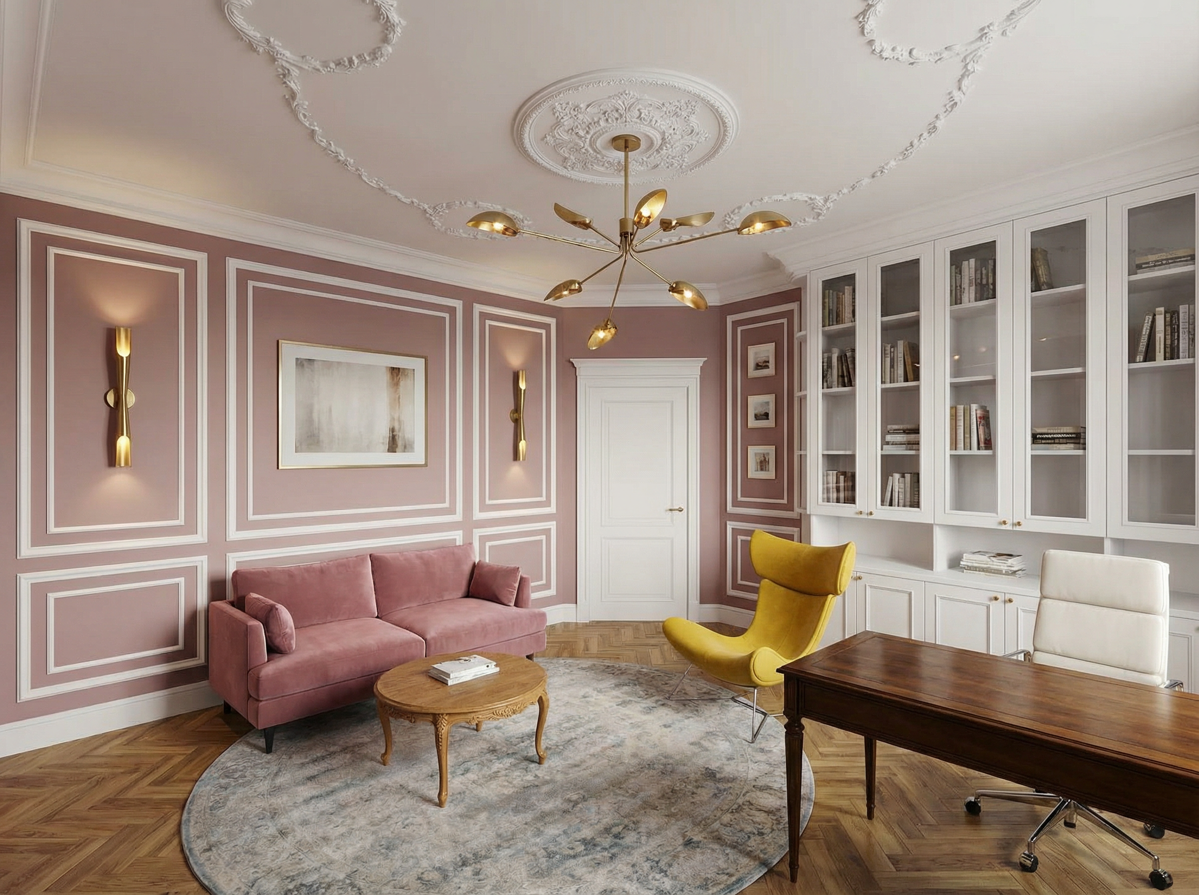 add soft warm cove lighting along the perimeter walls and drapery