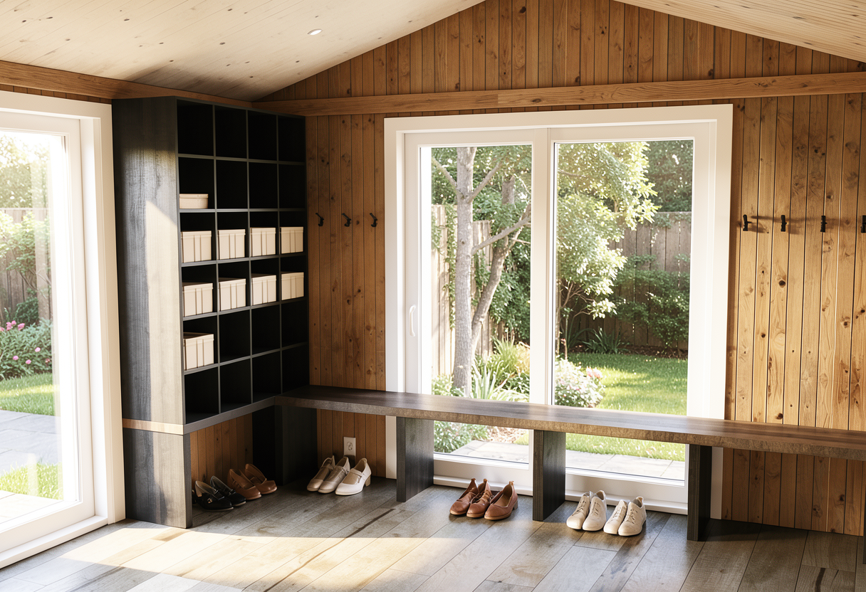 planche bois naturel au mur et au plafond chaussures sous le banc plancher en vinyle effet planche de bois