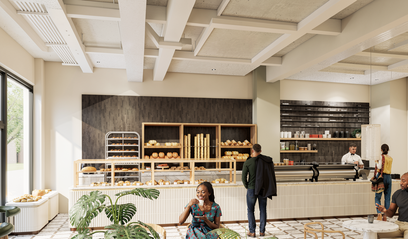 remove the lighting fixtures and add a drop ceiling in the area indicated in the green rectangle add a suspended ceiling only above the counter extend the ceiling above the front counter too