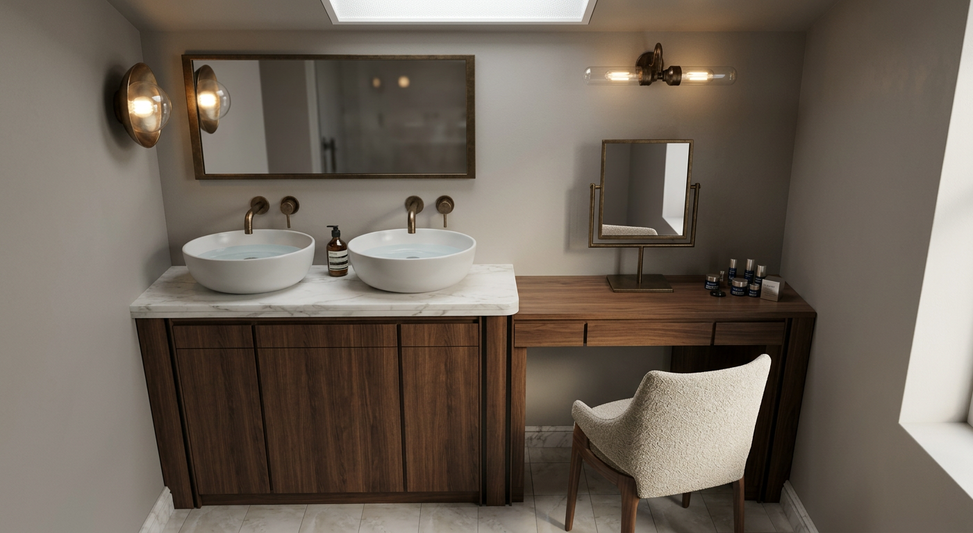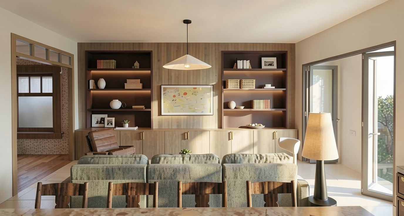 photorealistic high end interior architectural render with devol inspired kitchen and soft dappled light