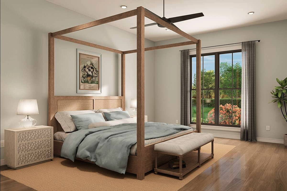 interior shot interior bedroom rendering update materials to tie into the living room shown on the mood board