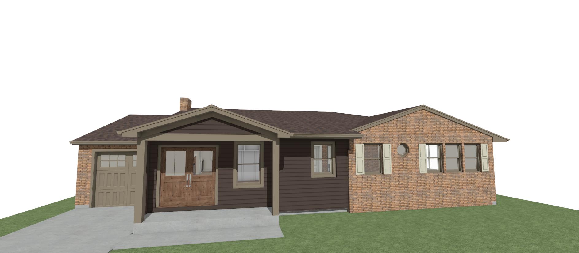 autumn day with leaves blowing landscaping at front sidewalk going to front door potted plant on front porch