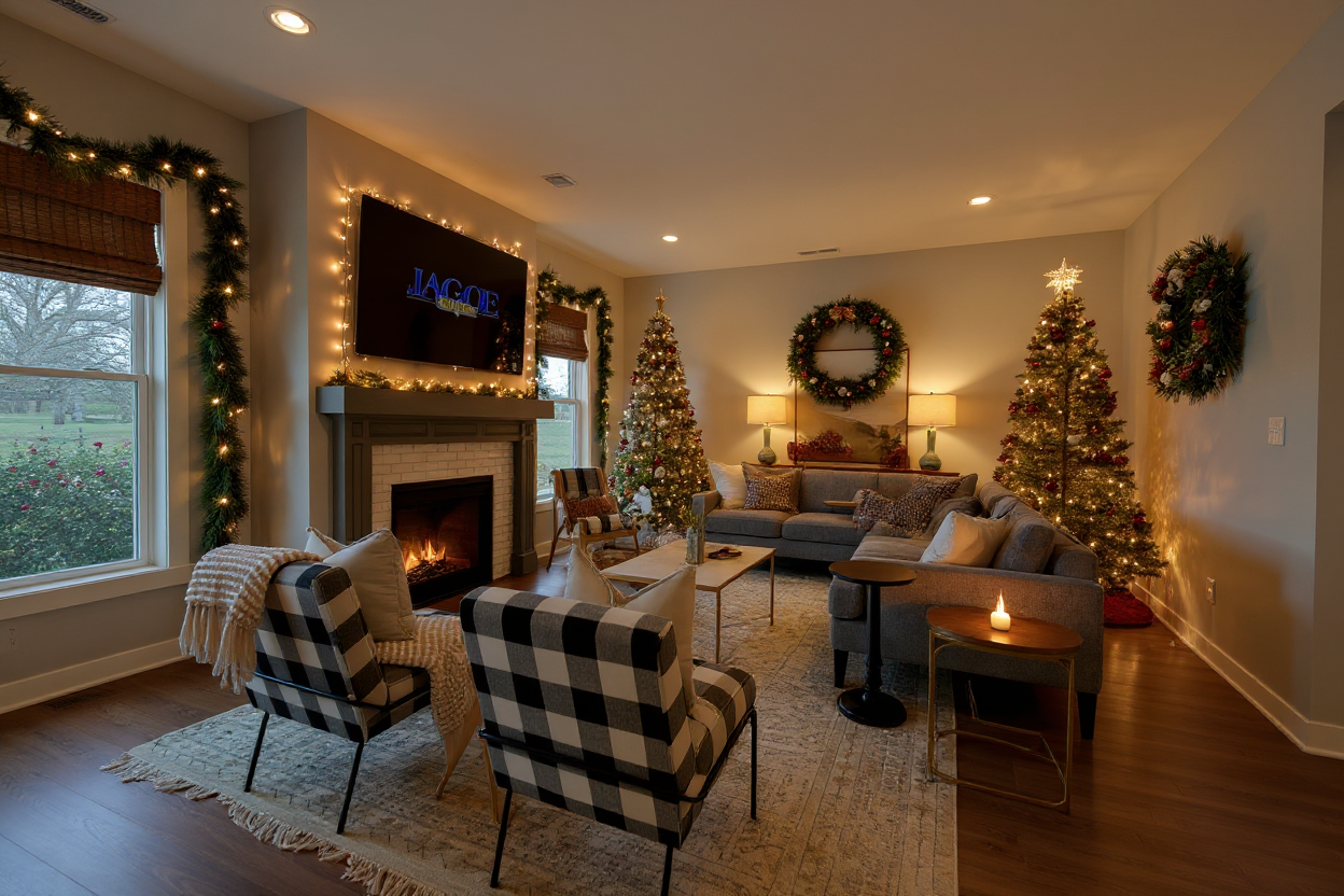 reception room for landscape design firm add photos of past projects into the walls add plants for decoration add light fixtures for decoration add seating area s and couch es