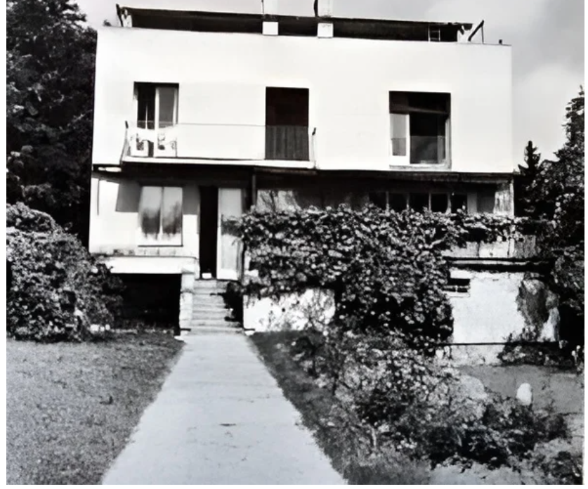 modernist exterior shot black and white pencil sketch really simple just line work architecture