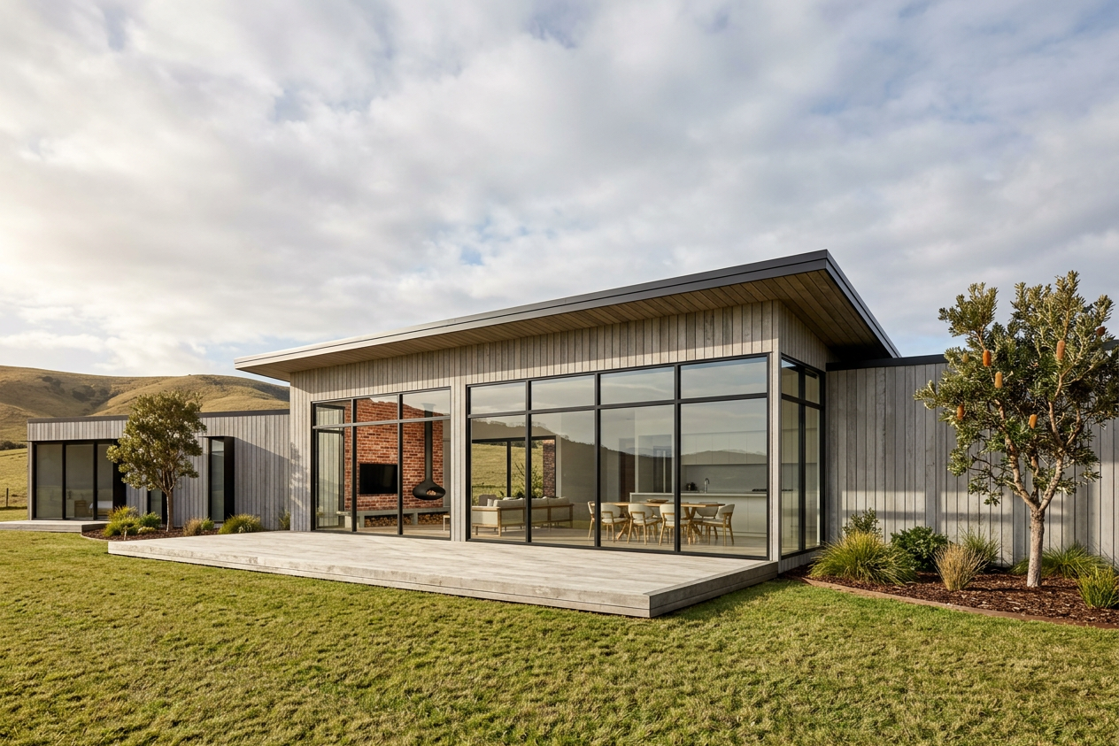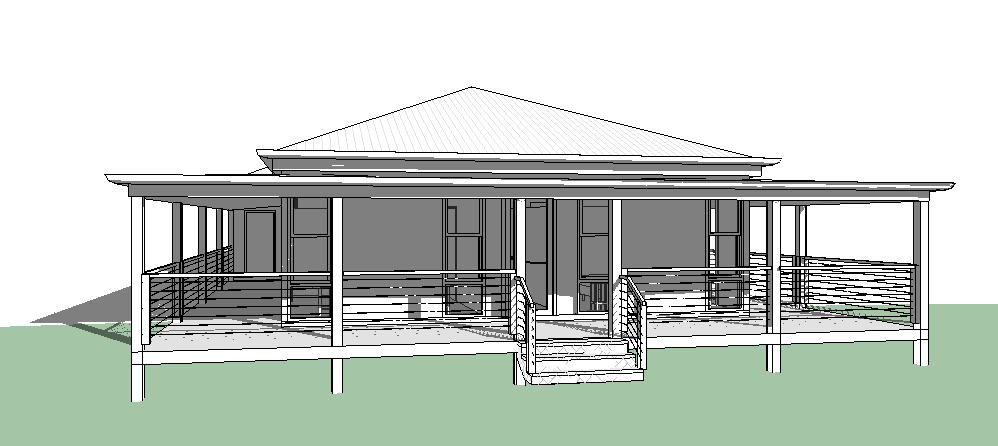 sandstone walls timber wrap around deck bushland landscape behind tin roof