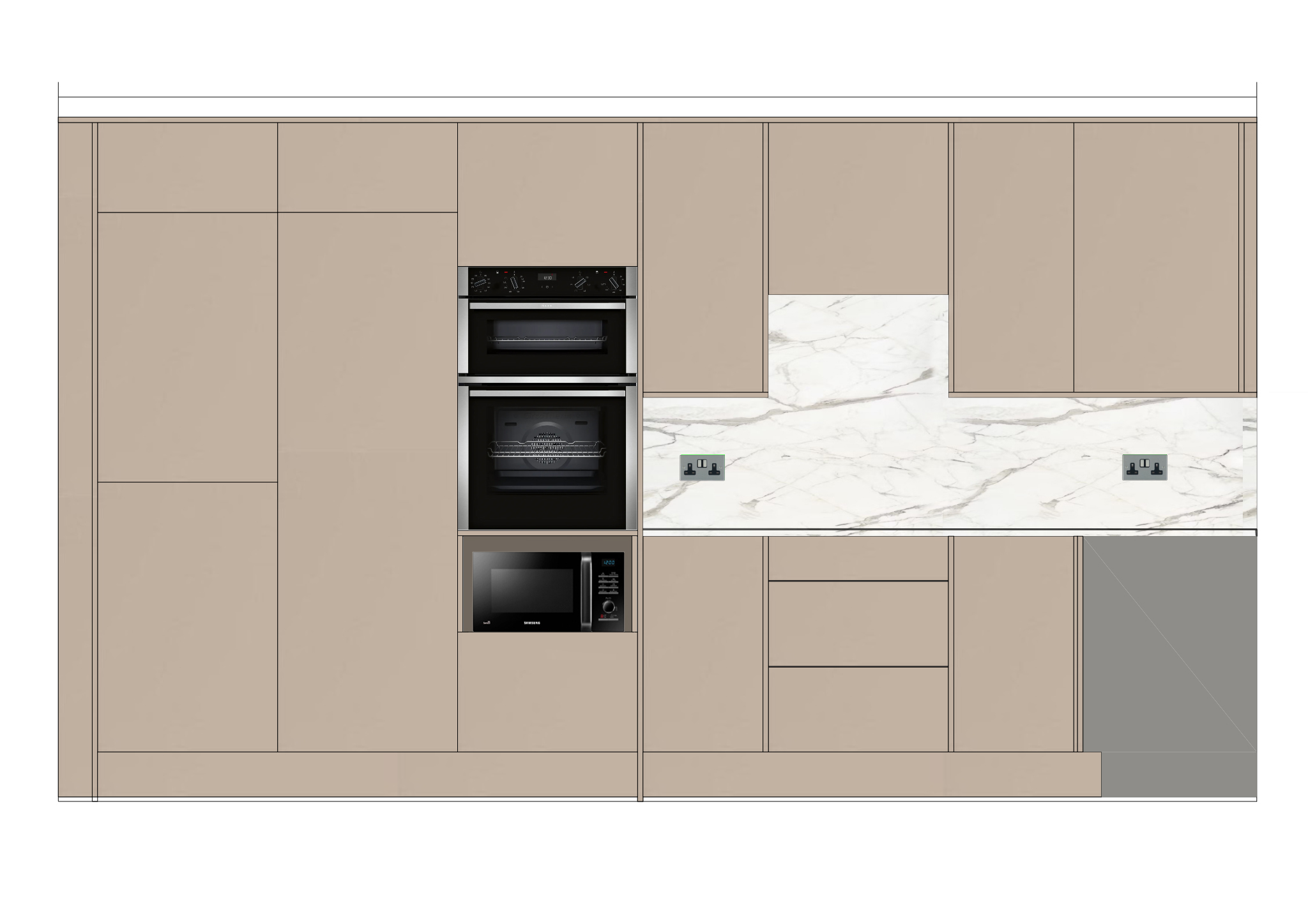 turn this kitchen elevation into a photorealistic render maintain the colour scheme and composition