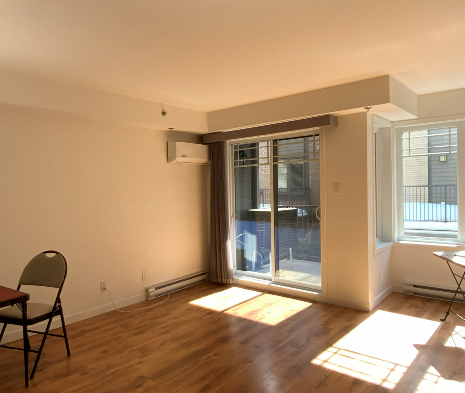 can you make the same 3d photo ralistic with this other view please using this new photo create a photorealistic 3d model of the empty living room remove the folding chair and the folding table remove the withe wire at the left on the floor make the room a little bit more bright and a more neutral tone please remove the white cube that appear on the ceiling on the left