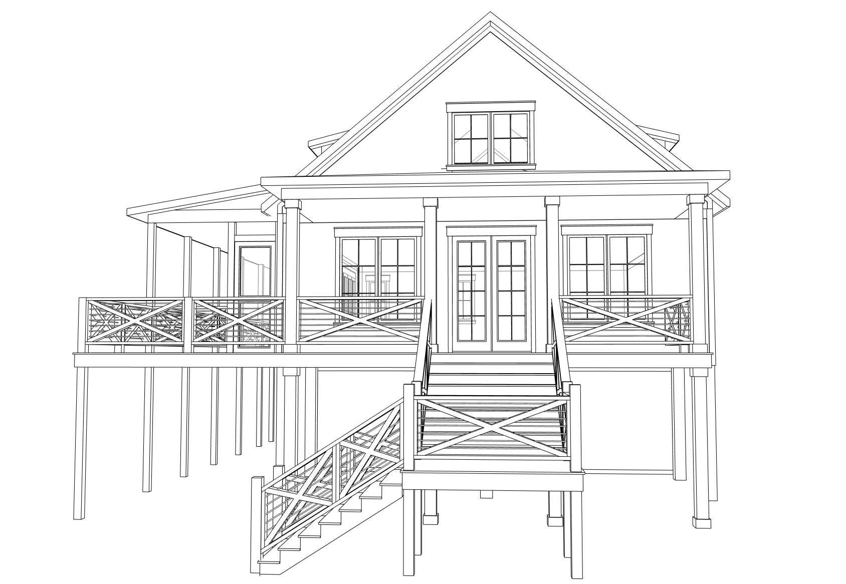 beach house on stilt foundation make realistic light metal roof board and batt siding left porch is screened in white posts and steps