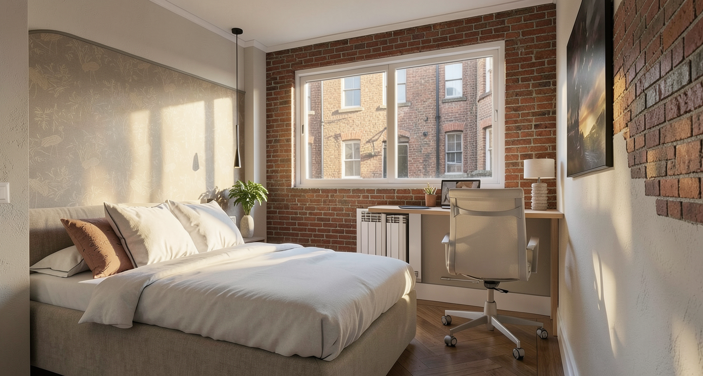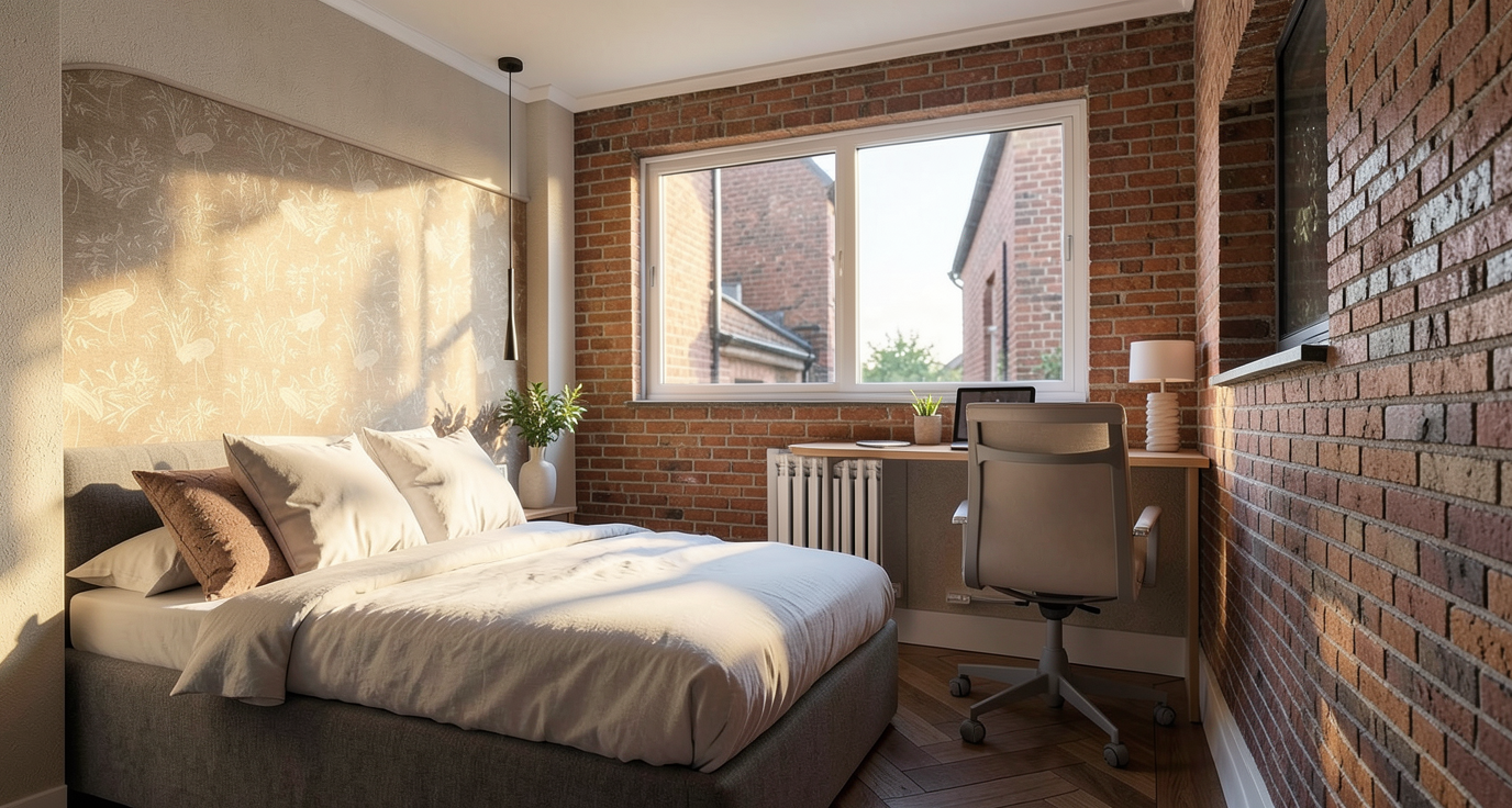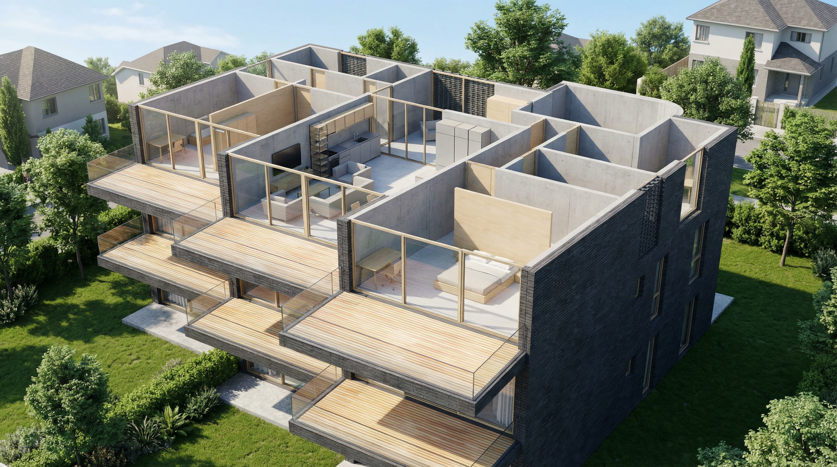 generate a realistic 3d interior view based on this floor plan maintain the layout and proportions modern architectural style realistic materials and lighting