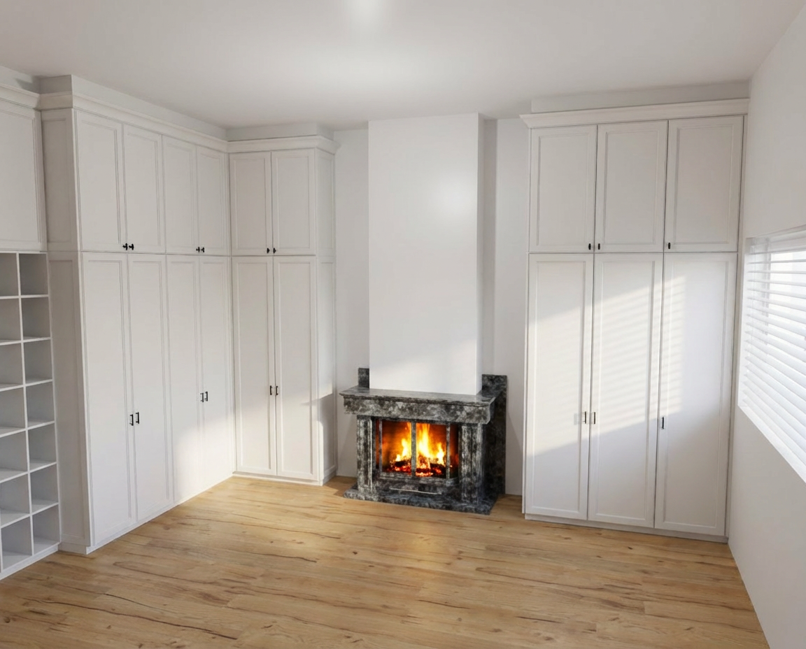 enhance photorealism with soft warm sunset lighting illuminating the facades from a low angle create a calm premium evening atmosphere with golden hour tones and long soft shadows turn on interior lighting with a warm glow visible through windows to add life and realism add subtle exterior lighting facade lights and pathway lighting to enhance depth and ambiance increase contrast slightly to emphasize warm light on surfaces against cooler shaded areas enhance materials clean neutral white plaster rich darker wood tones deep matte roof realistic textures improve vegetation with natural variation and warm highlights from sunlight maintain a clear crisp atmosphere with no haze keep a high end architectural visualization style clean and sharp preserve geometry and composition exactly