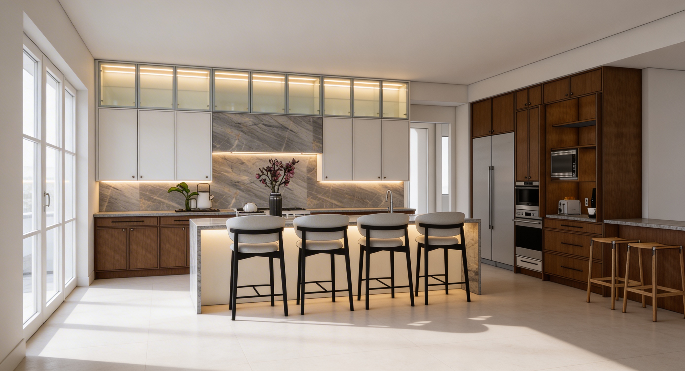 create a highly realistic render of an interior bedroom with a calm atmosphere ultra realistic render high resolution professional interior design photography style keep the design exactly as it is the walls are light beige cemento effect keep exatly the same texture ambient light